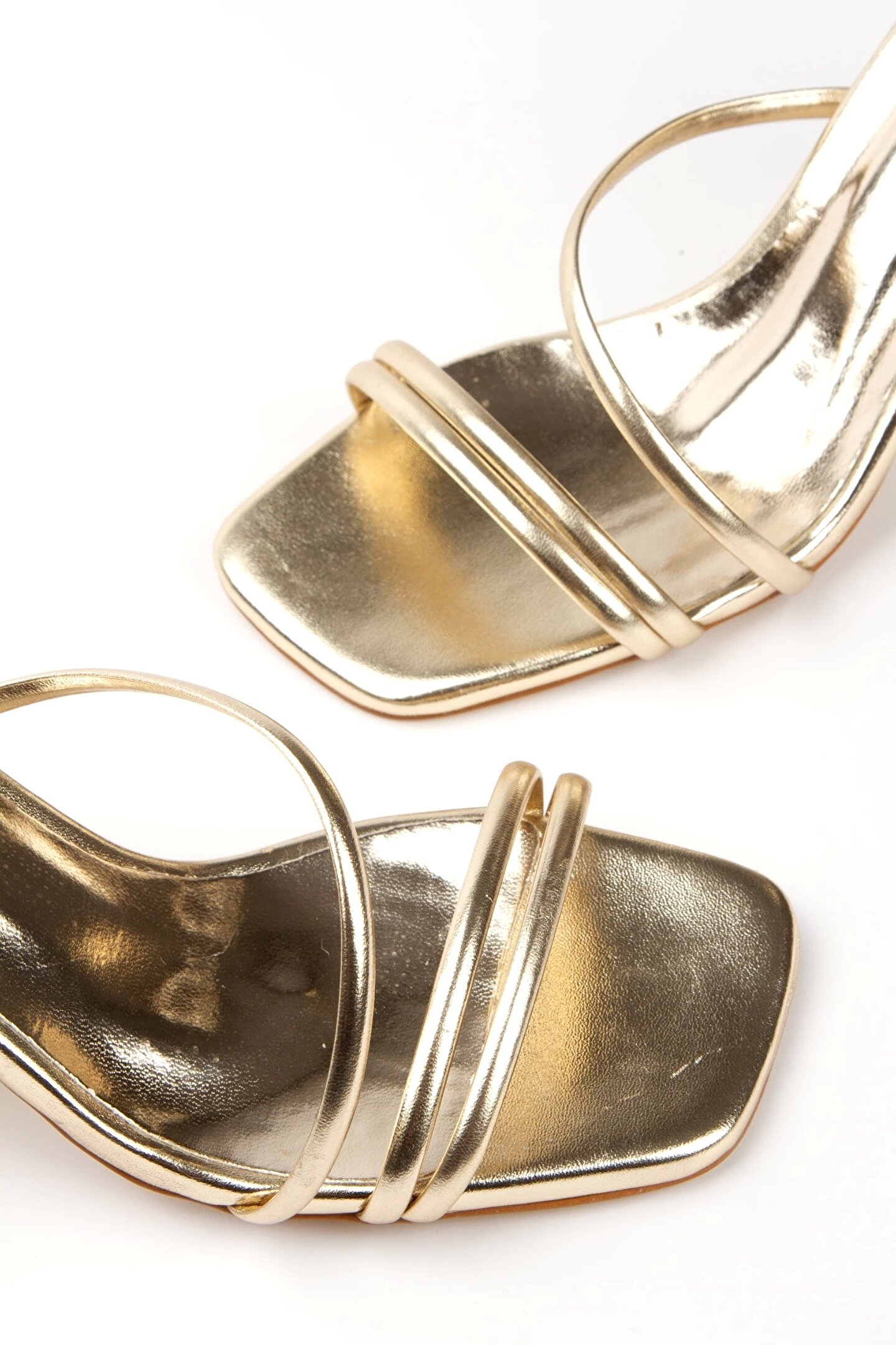 GULT Kadın Yazlık İnce Topuklu Biyeli Ayakkabı Altın