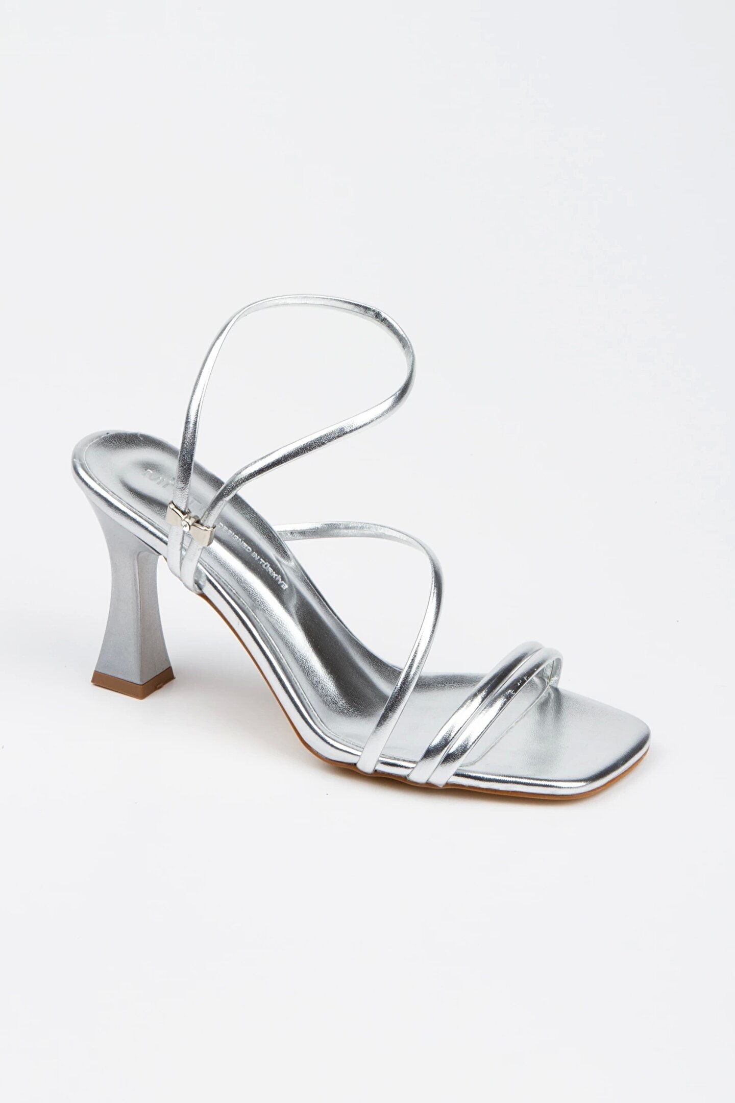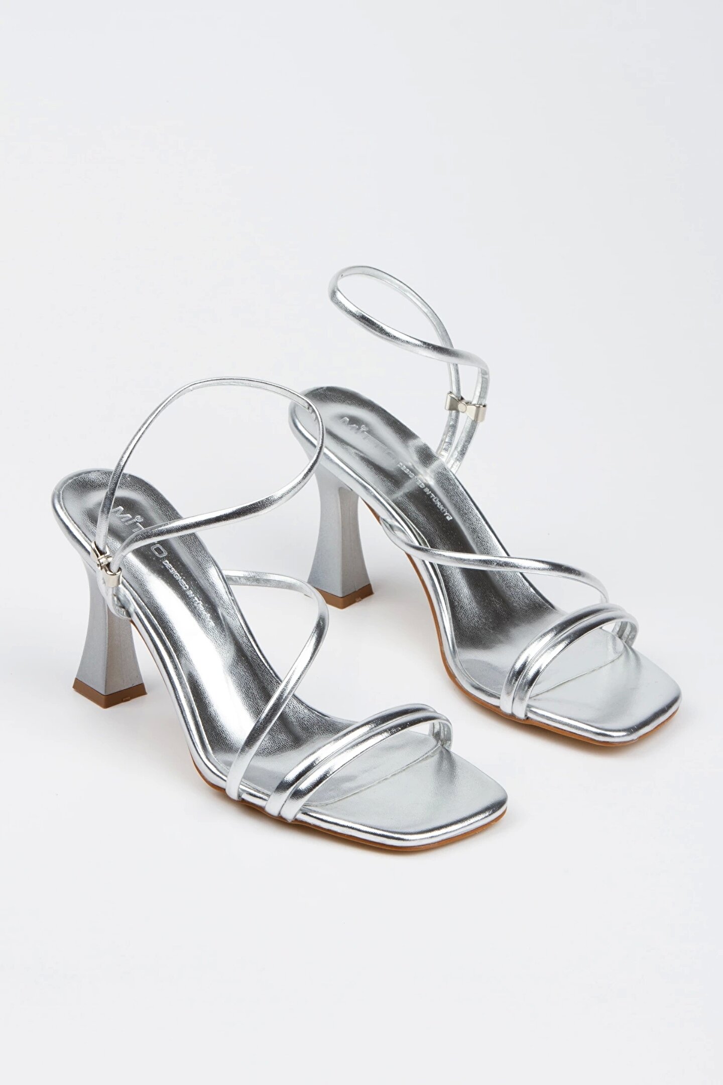 GULT Kadın Yazlık İnce Topuklu Biyeli Ayakkabı Gümüş