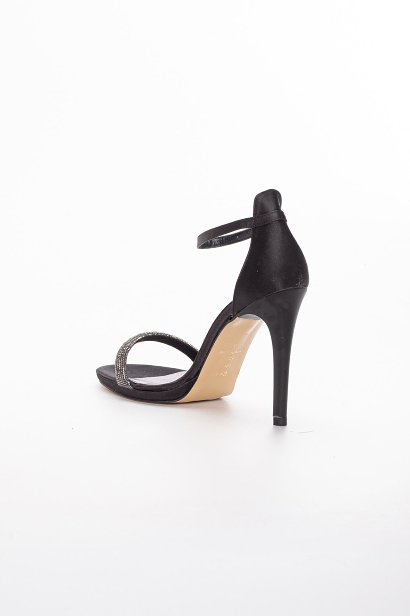 GULT Kadın Yüksek Topuklu Platformlu Taşlı Tekbant Şık Salon Ayakkabısı Siyah