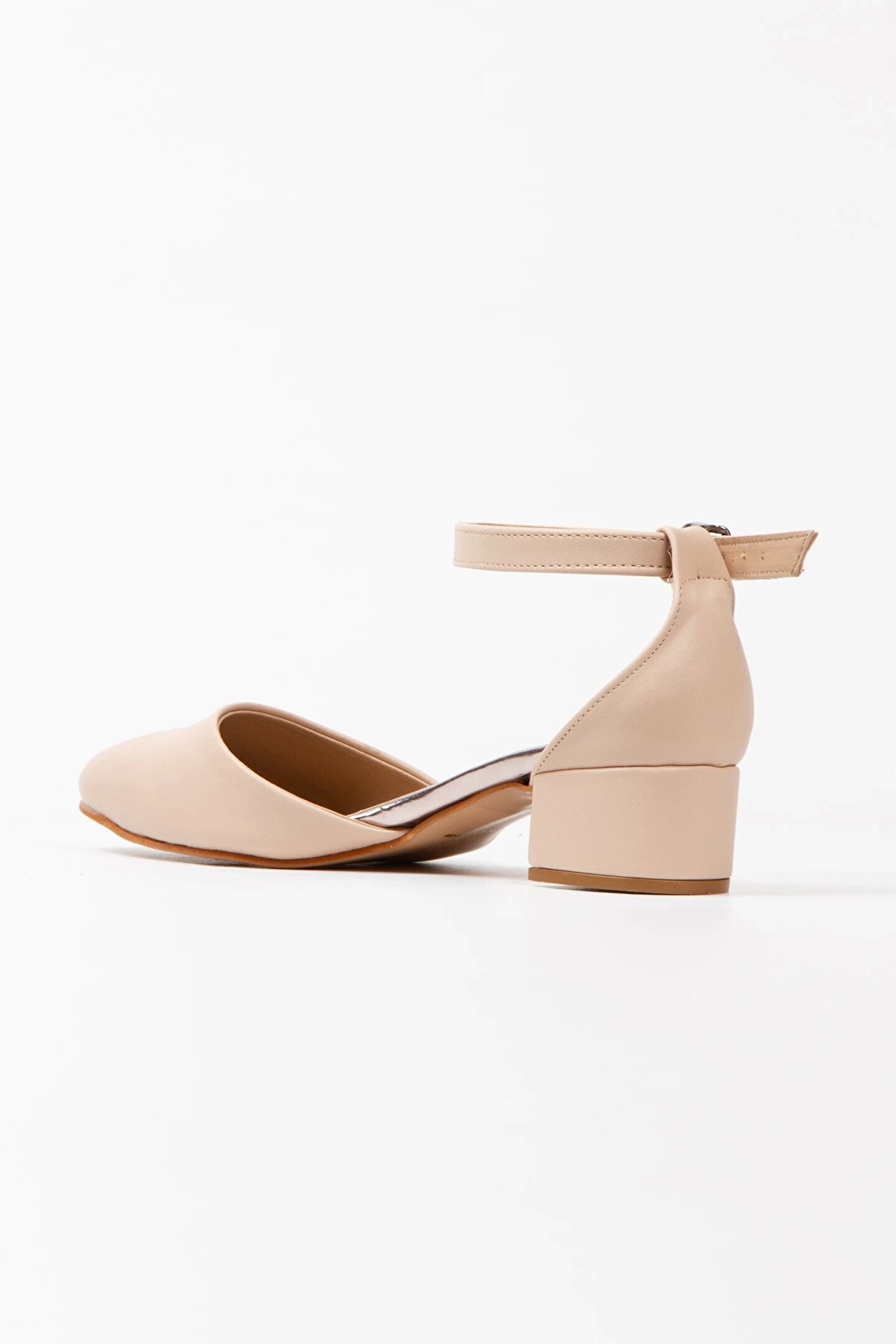 GULT Kalın Topuklu Yanı Açık Ayakkabı ve Çanta Takımı Nude