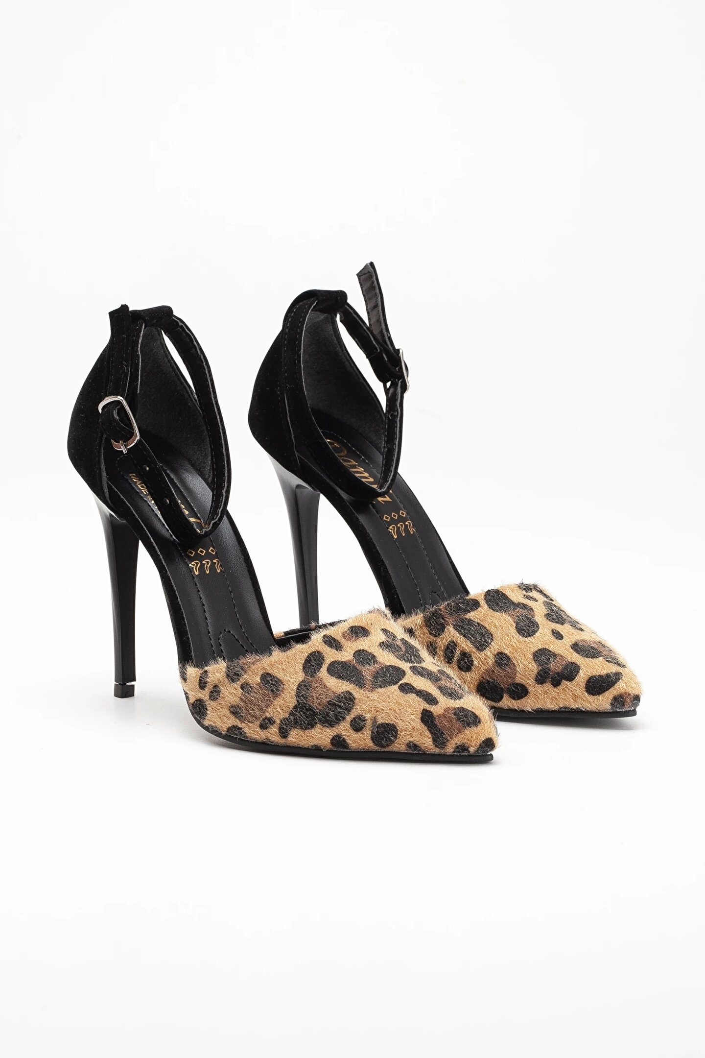 GULT Kadın İnce Yüksek Topuklu Leopar Desenli Ayakkabı
