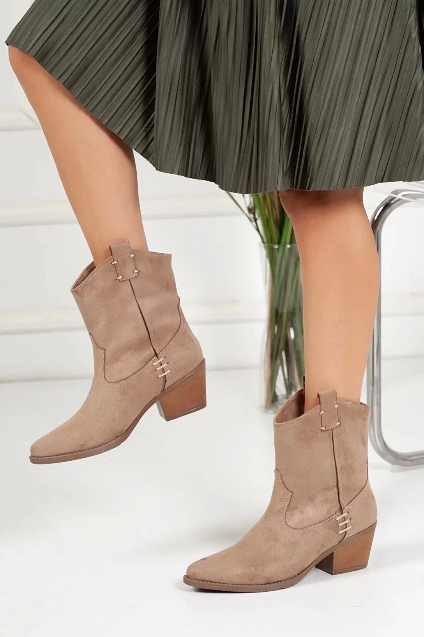 GULT Vizon Kalın Topuklu süet Kovboy Bot