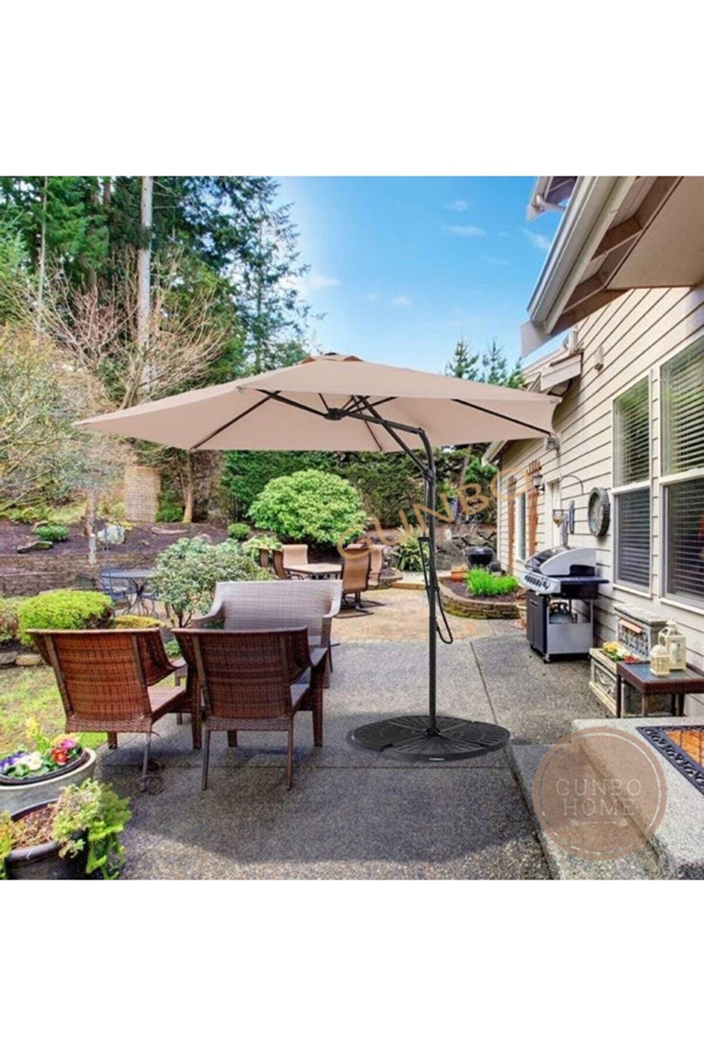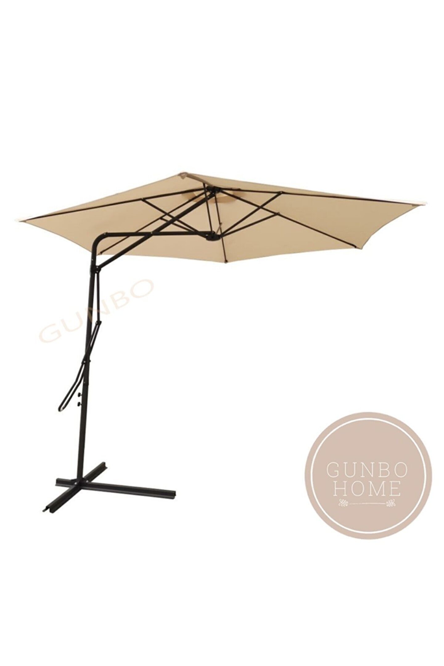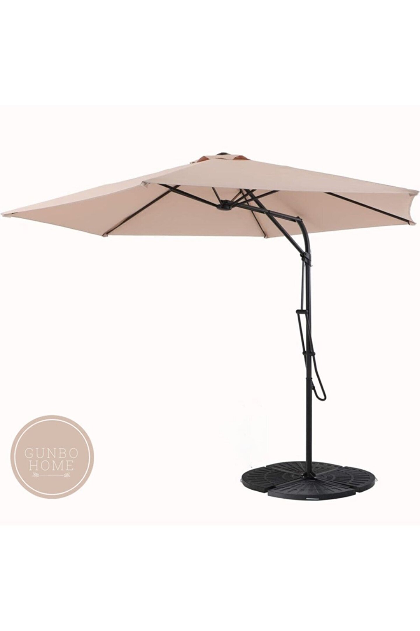 GUNBO 3 Mt Ekru Şemsiye 50 + Uv Koruma Suya Dayanıklı Otomatik Bahçe Şemsiyesi Teras Gölgeliği