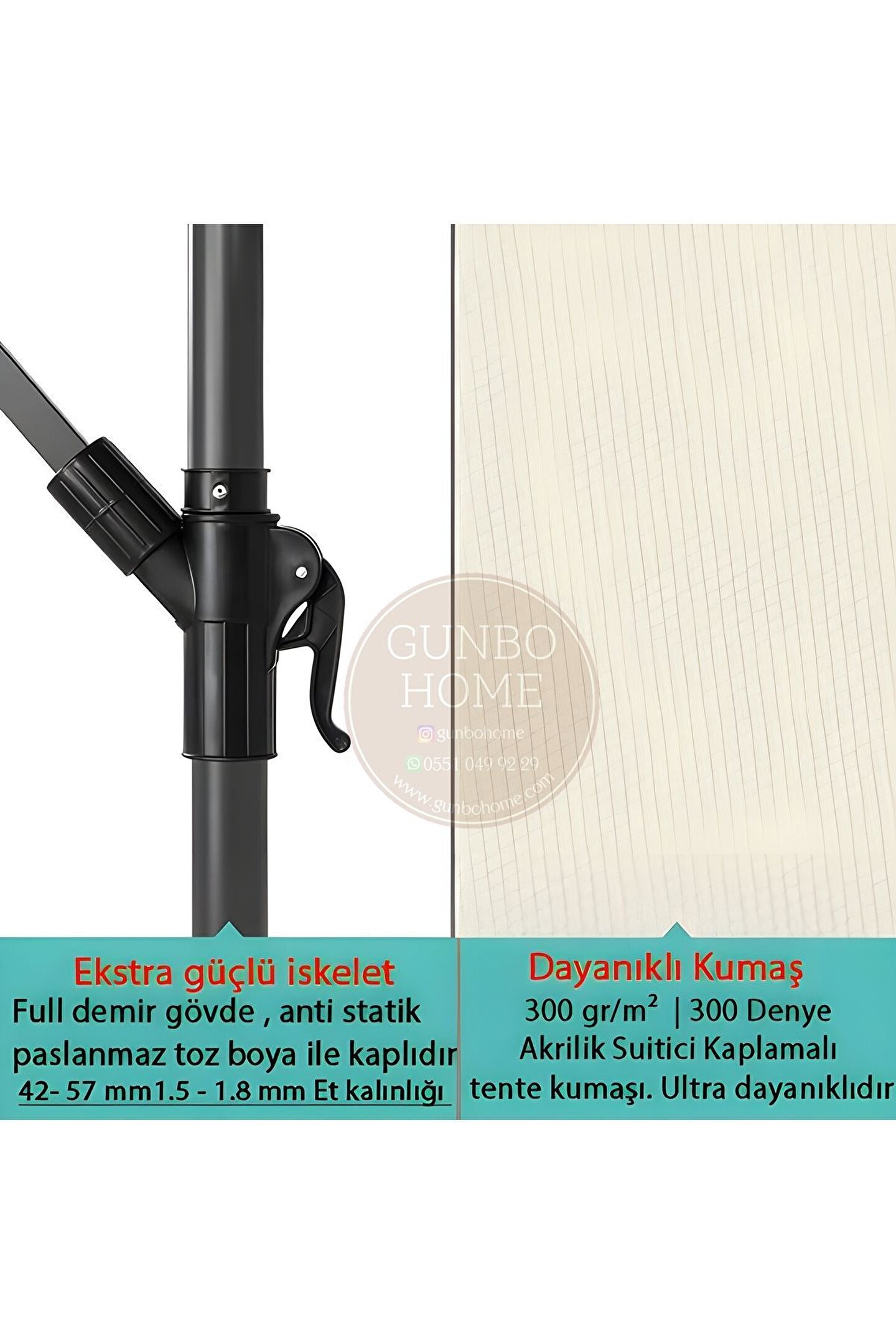 GUNBO HOME 3 Mt 8 Kaburga Full Demir 21 Kg EKRU Bahçe Şemsiyesi Full Set Havuz Şemsiyesi Büyük Şemsiye