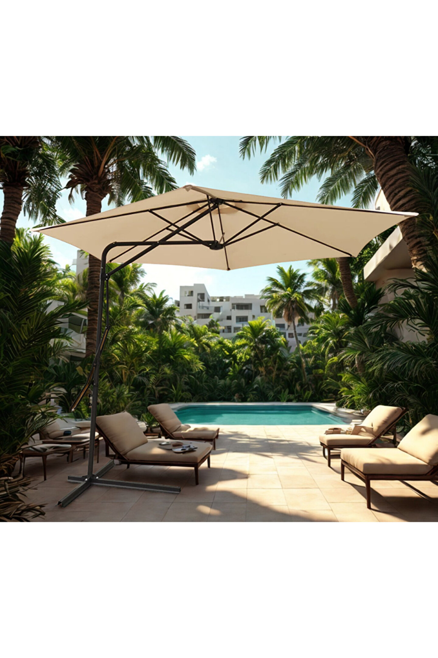 GUNBO HOME 3 Mt Şemsiye + 4 Lü Ağırlık Seti Havuz Şemsiyesi Bidonlu, Bahçe Şemsiyesi, Teras Şemsiyesi Set