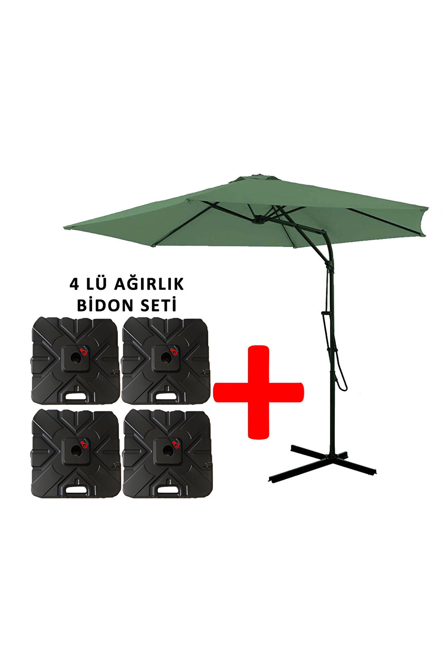GUNBO HOME 3 Mt Şemsiye + 4 Lü Ağırlık Seti Havuz Şemsiyesi Bidonlu, Bahçe Şemsiyesi, Teras Şemsiyesi Set