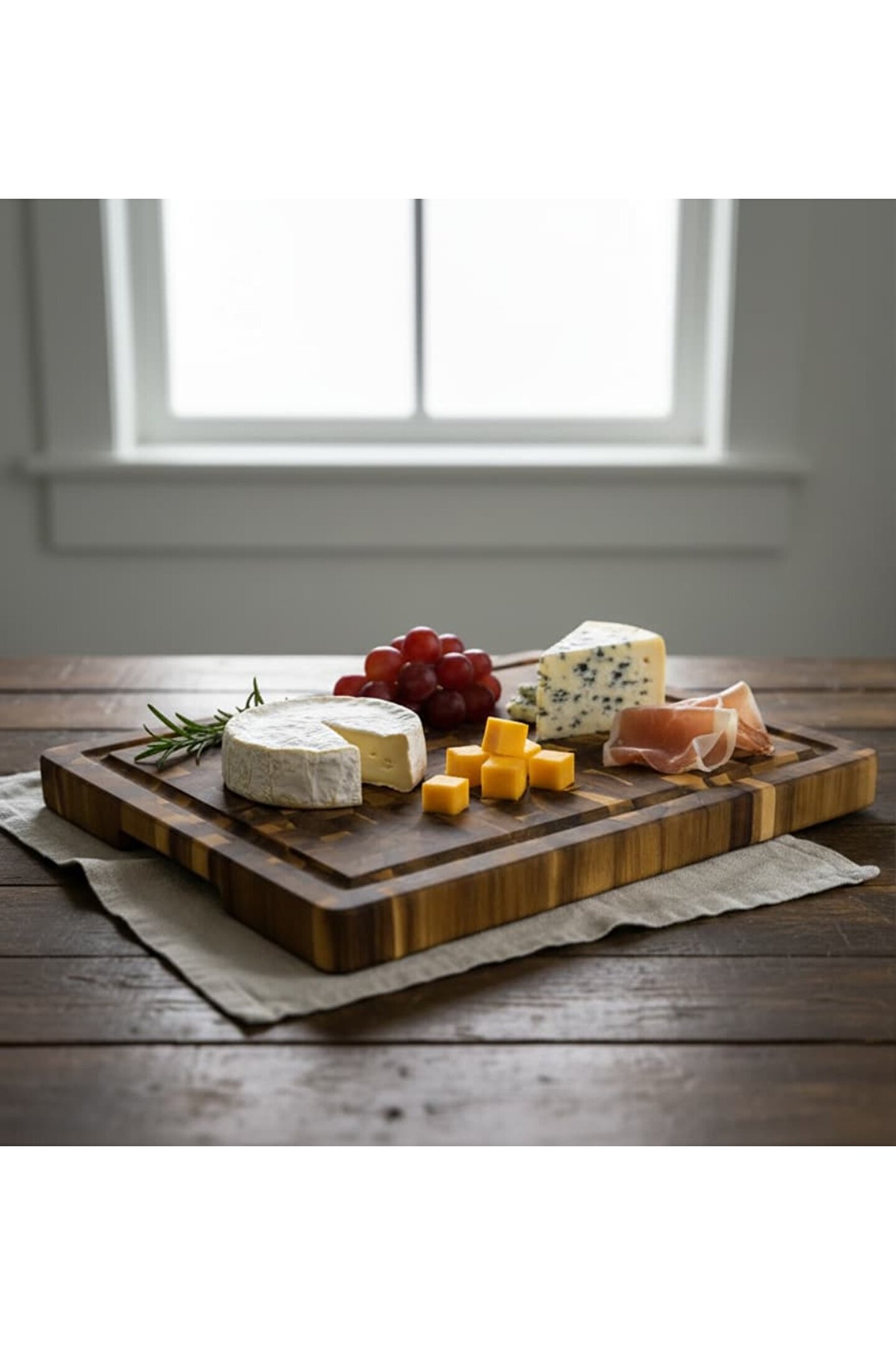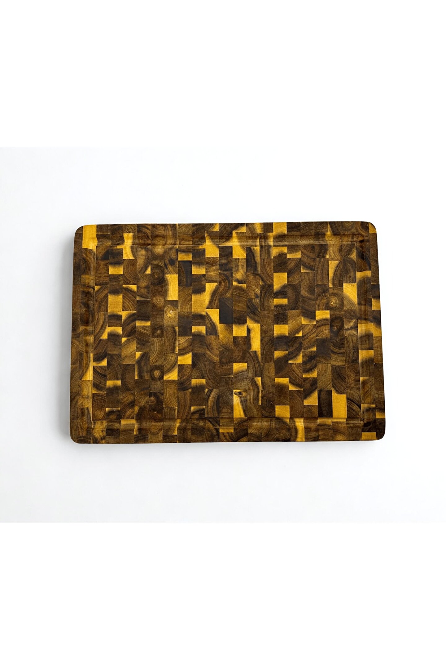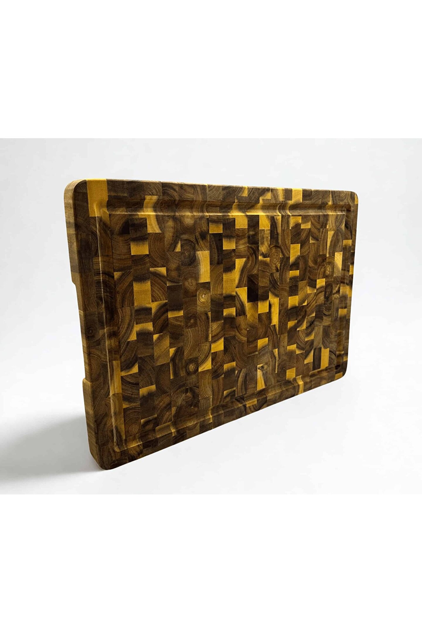 GUNBO HOME Akasya Kesme Tahtası XL Boy ENDGRAIN 40x32x3 cm VNHT-003 Masif Ahşap Doğrama tahtası Sunum Tahtası