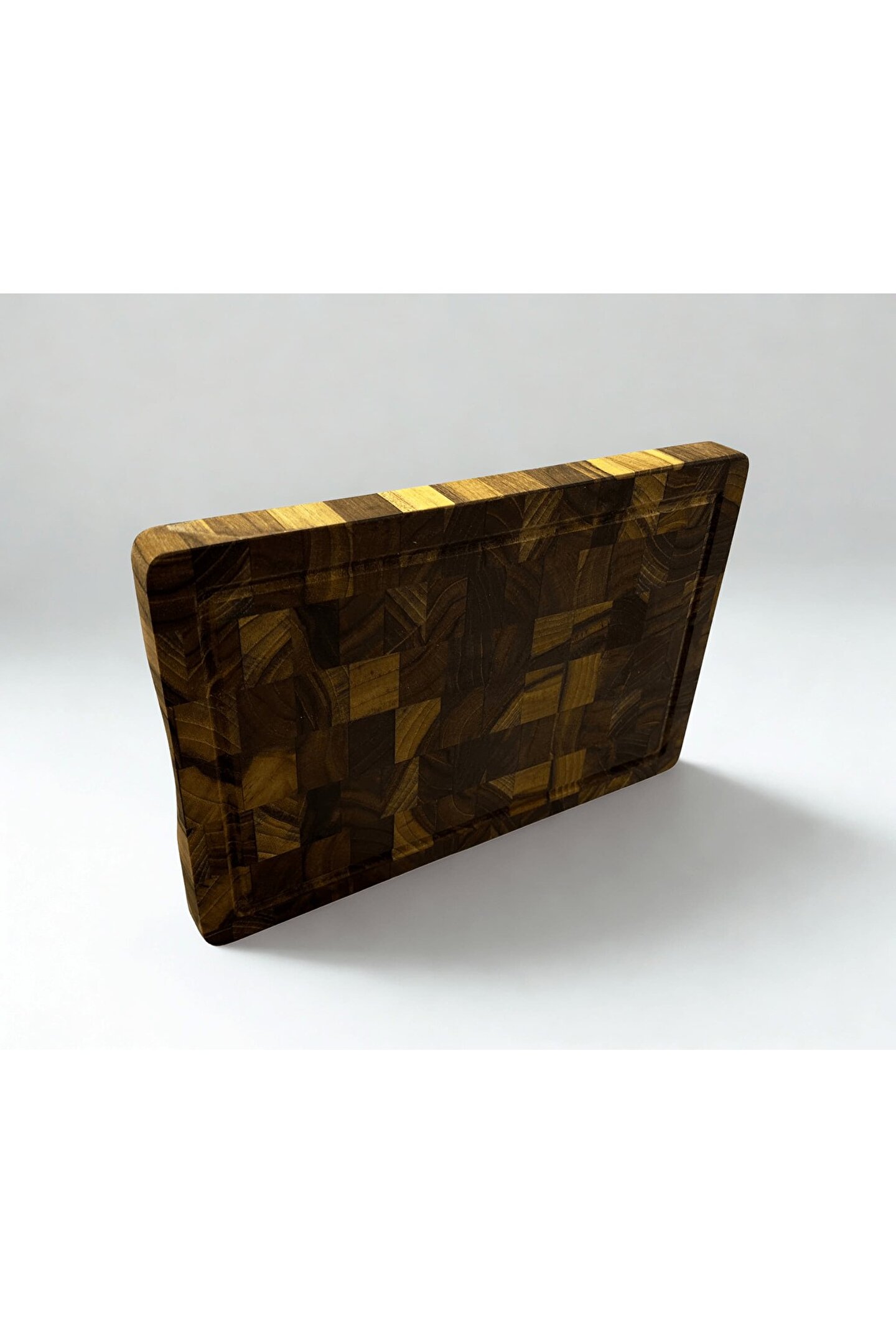 GUNBO HOME Tik Chef Kesme Tahtası Medium Boy ENDGRAIN 30×20×3 cm Masif Ahşap Doğrama tahtası Sunum Tahtası