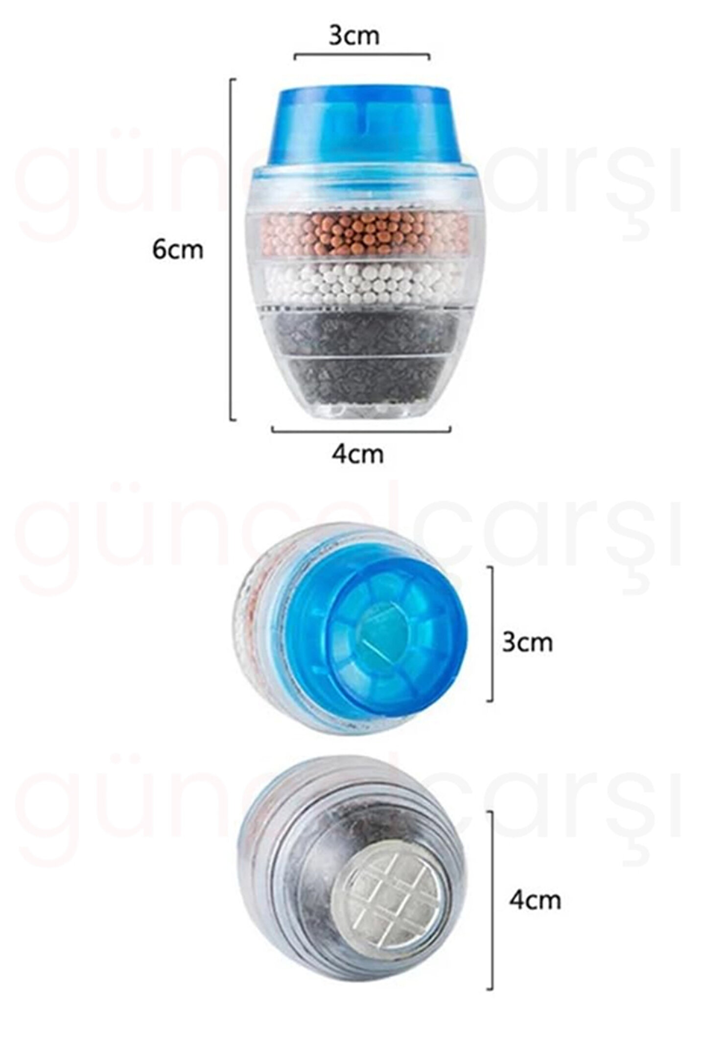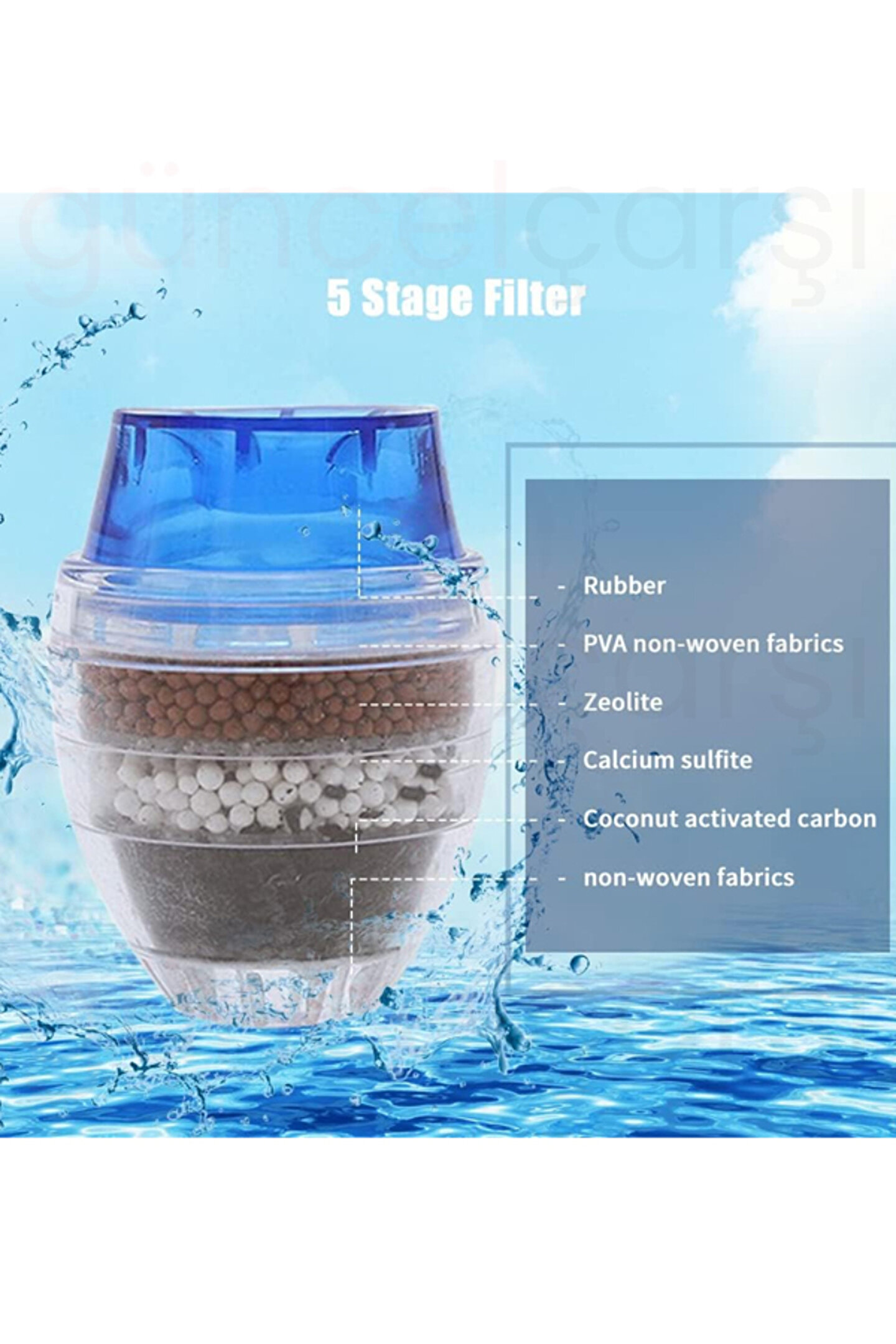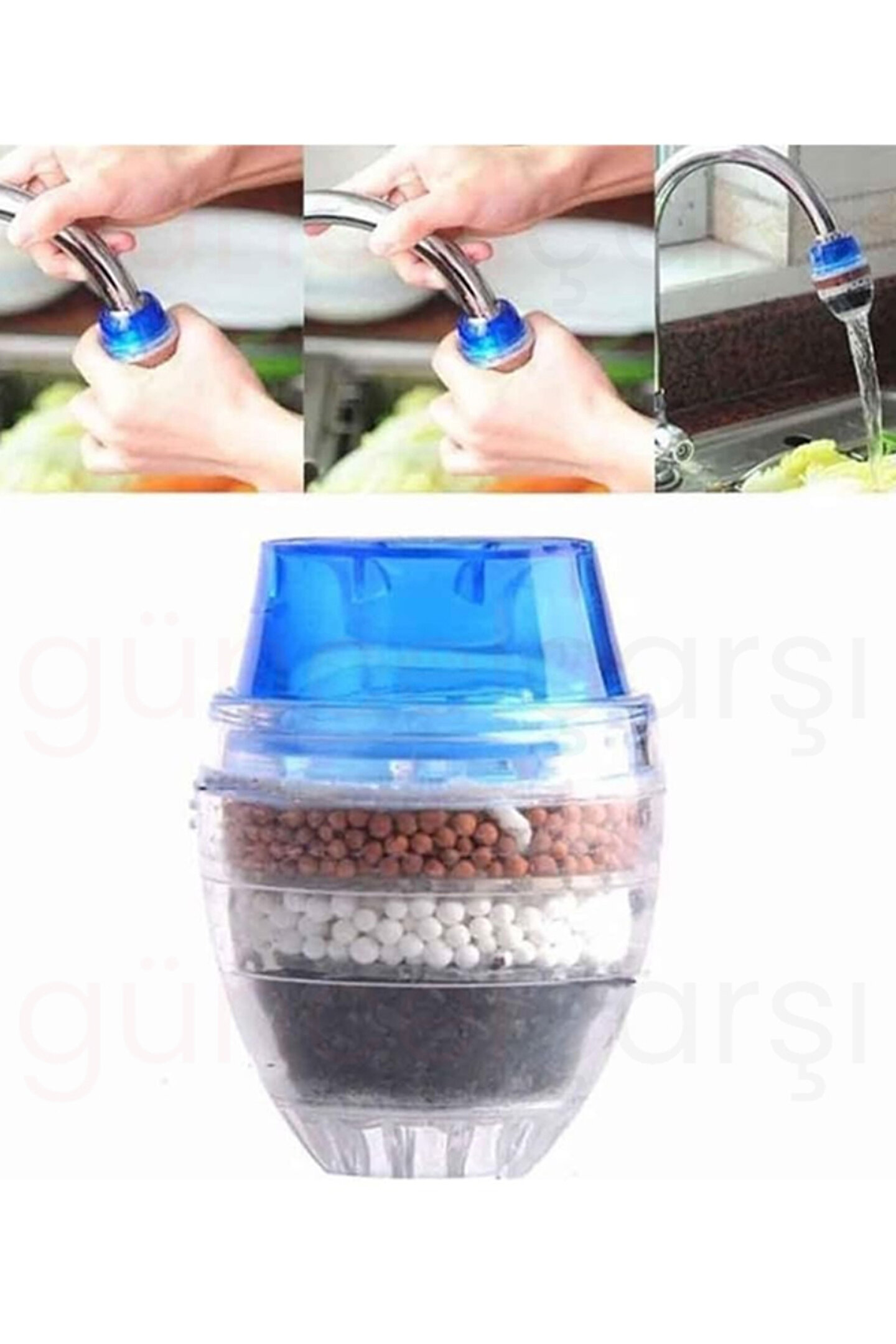 » 5 Katmanlı Aktif Karbon Su Arıtma Aparatı, aktif karbon filtrasyonu ve 5 katmanlı su temizleme filtresi ile evinizde sağlıklı suyun keyfini çıkarmanızı sağlar. ; » Suyunuzu filtreleyin ve arındırın, ailenize en iyi ve sağlıklı suyu verin. Sunup 5 Katmanlı Aktif Karbon Su Arıtma Aparatı ile anında harika arıtılmış su üretebilir ve en iyi tadım kahve ve çay yapmanıza yardımcı olabilir. ; » Malzeme: Aktif karbon, kalsiyum sülfit, zeolit, PVA nonwovens » Boyut: Musluğun çapı 21-23mm veya 16-19mm için uygundur » Renk: Mavi, kırmızı, yeşil » Uygulama: Musluğu temizleyin ve esnek poşetlere doğrudan zorla » Su Kalitesi Gereksinimleri: Belediye suyu ; » Su Arıtma Makinesi Tipi: Ön filtre » Tip: Aktif karbon » Fonksiyon: Filtre ; » İpucu: Lütfen uzun süre sıcak su altında kullanmaktan kaçının. 50 °C'nin altında tavsiye edilir. İlk kullanımda siyah suyu göreceksiniz çünkü karbon, 5-10 saniye sonra iyi çalışabilir. Yaşam Süresi: Su kalitesine göre, her gün kullanım için normalde 1-2 ay. ;