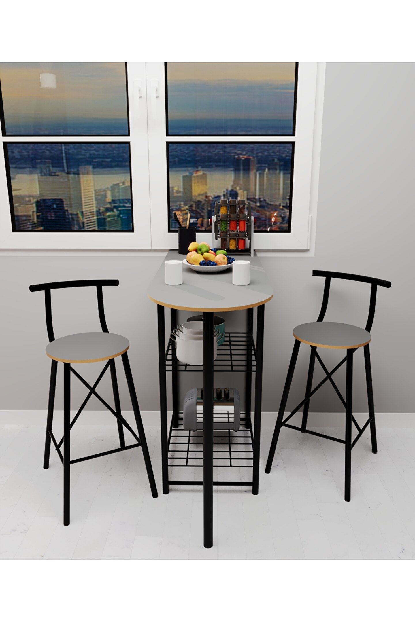 Güzelkan 2 Kişilik Mutfak Masası Mutfak Bar Masa Sandalye Takımı Katlanır Bar Sandalye Atlantik