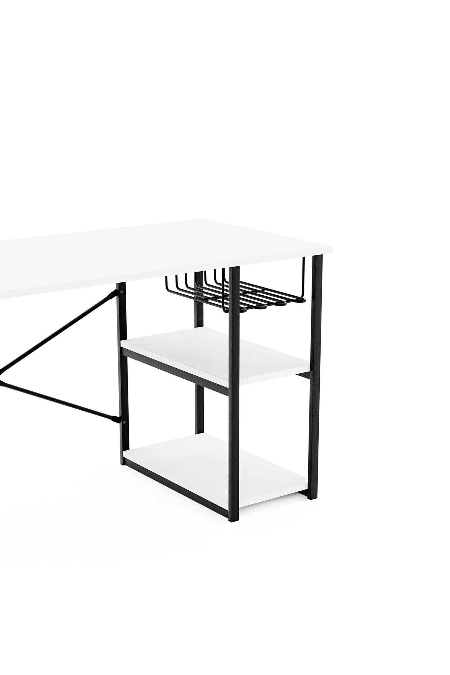 Çalışma masası raflı olduğu için de benzersiz avantajları beraberinde getirir. Raf içeren bölümüne çeşitli eşyalar, objeler, kitaplar ve kırtasiye ürünleri konulabilir. Son derece sağlam yapısı ile öne çıkan