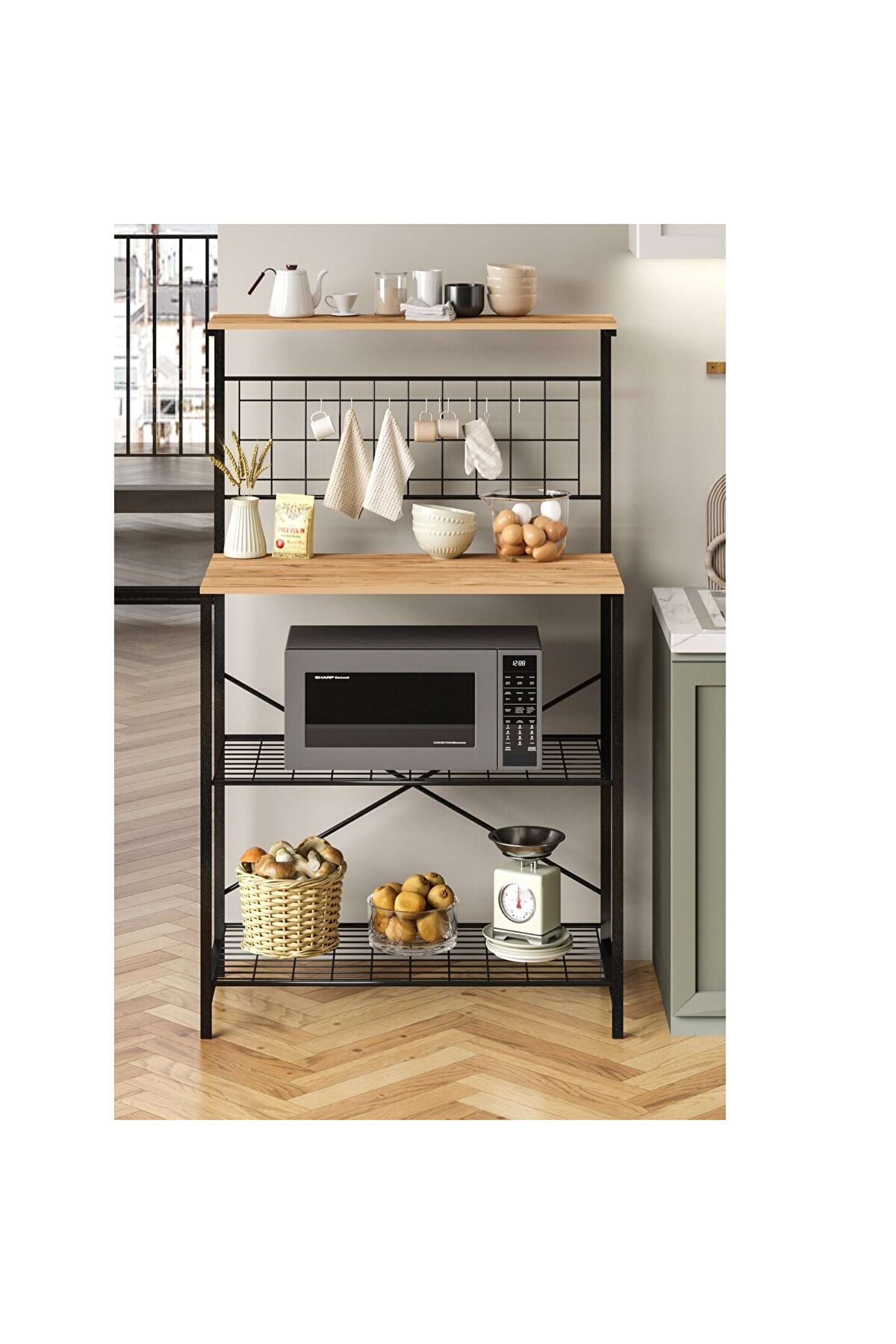 Çok Amaçlı Dolap Mutfak Rafı Bango Masa , modern duruşu ile bir adım öne çıkar. Ürün, isminden de anlaşılacağı gibi raflı mutfak masası modelidir. Çeşitli mutfak eşyalarının muhafazasını mümkün kılar. Kettle, kahve makinesi, midi fırın, mikrodalga fırın, kahve bardağı, ekmek kutusu gibi aklınıza gelebilecek tüm mutfak malzemelerini aynı yerde toplar.