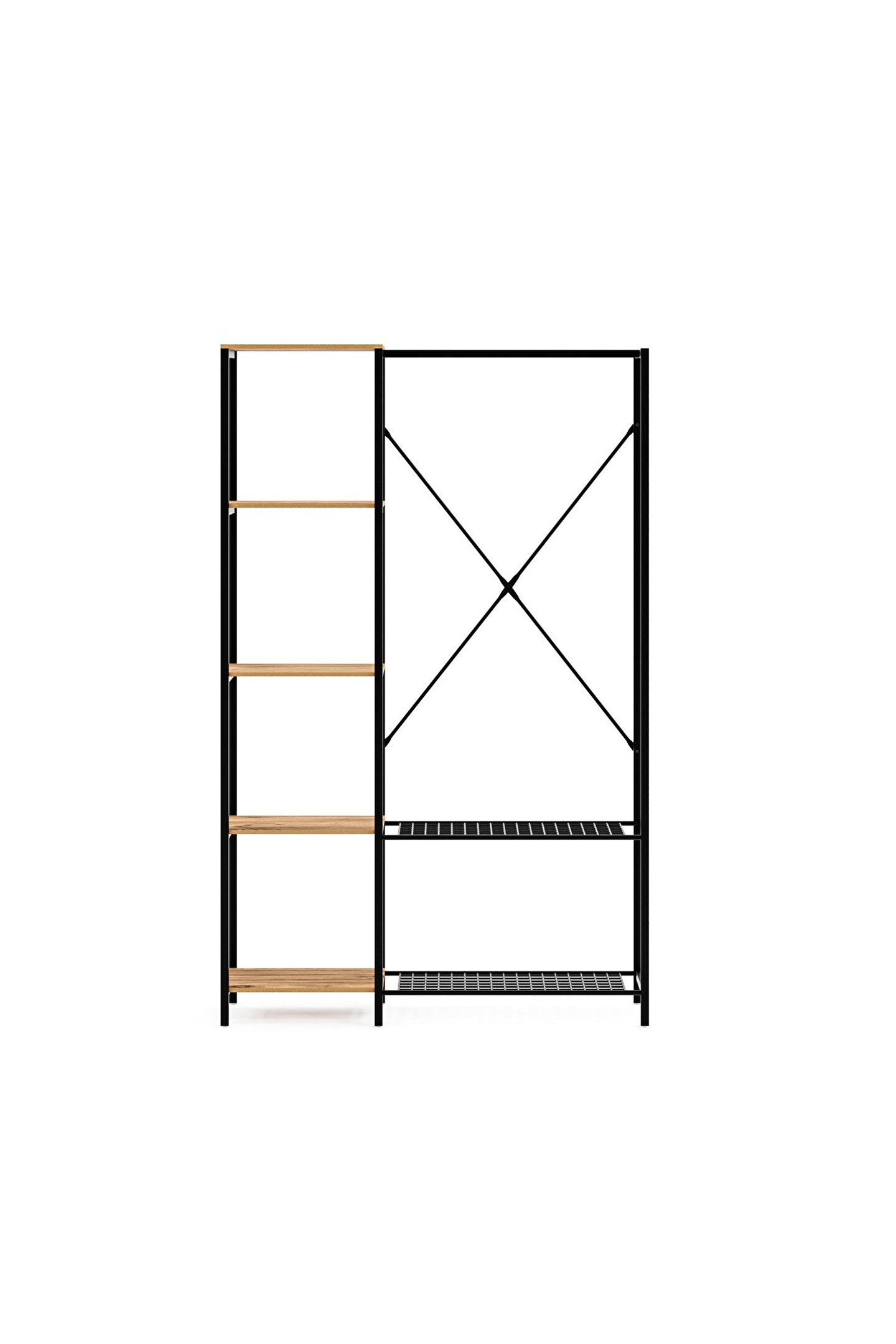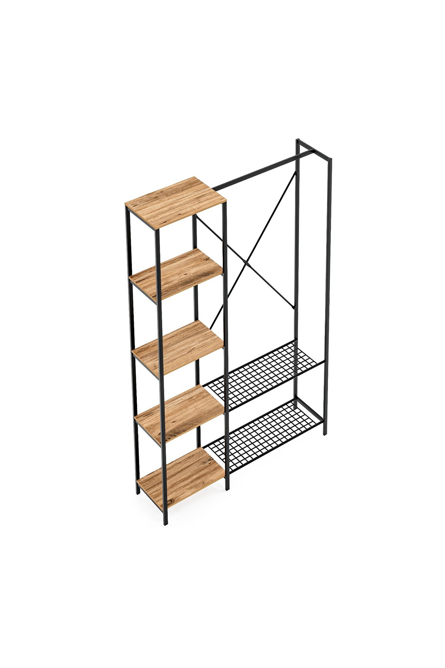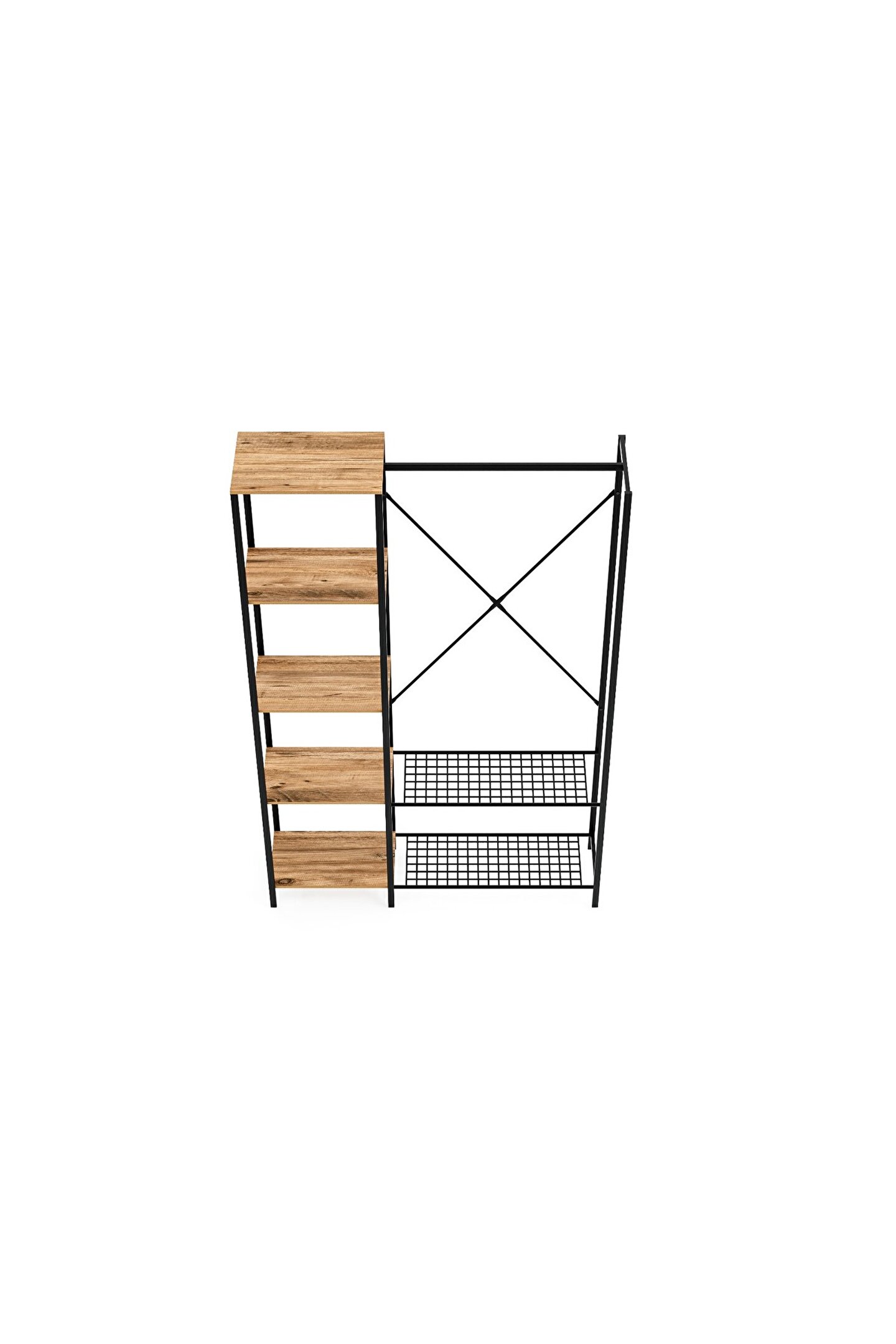 Çok Amaçlı Metal Ayaklı Raflı Dolap Ayakkabılık Portatif Portmanto Gardırop'in kurulumu tamamlandıktan sonra, sadece fonksiyonel bir depolama alanı olarak değil, aynı zamanda odanızın dekoratif bir öğesi olarak da ön plana çıkacağını göreceksiniz. renginin sıcak tonları, mekana doğal bir dokunuş katarak evinizin atmosferini zenginleştirir. Metal ayaklar ise, modern bir estetikle sağlamlığı birleştirerek, her türlü kullanım koşuluna dayanıklı bir yapı sunar.