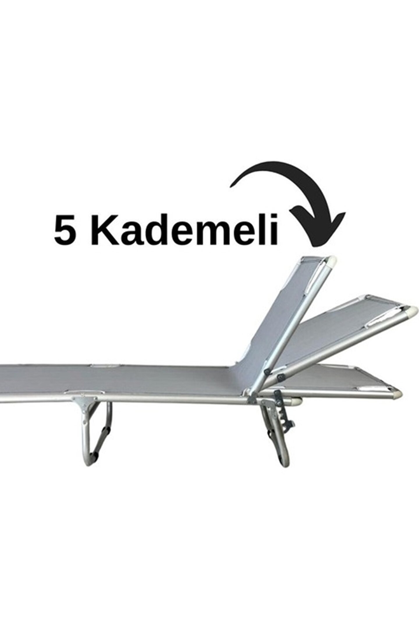 Katlanır Alüminyum Şezlong, kullanıcı dostu özellikleri ile dikkat çeker. 4 farklı yükseklik seviyesi, sırtınızı destekleyerek okuma ya da bronzlaşma gibi farklı faaliyetler için idealdir. 30 cm yükseklikteki yatak pozisyonu, zemindeki soğuk ve nemden izole bir konfor sağlar.