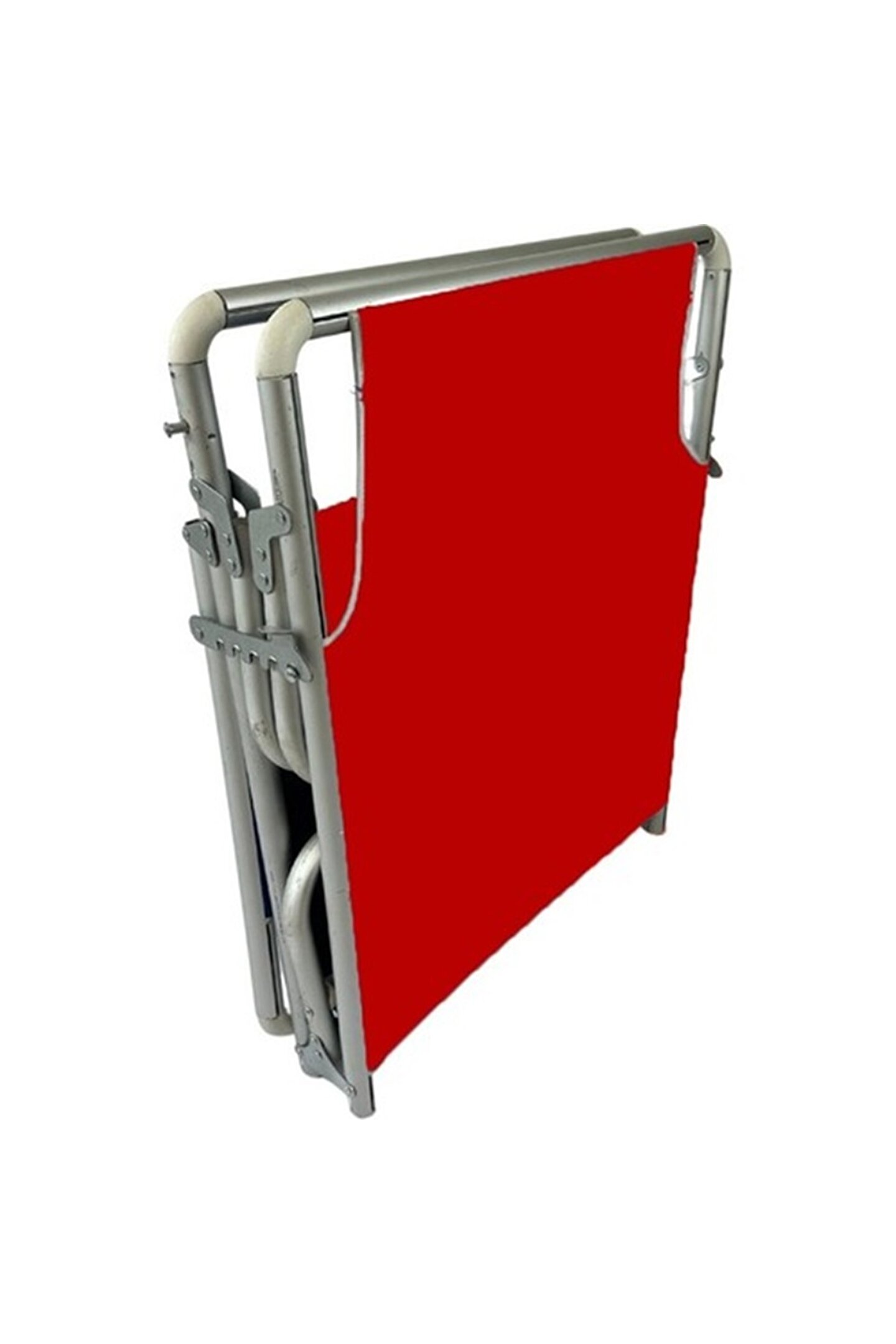 Göz alıcı kırmızı rengi ve sağlam yapısıyla  Katlanır Alüminyum Şezlong Kademeli Kamp Yatağı, açık hava maceralarınızın dinamik bir parçasıdır. Hafif ve sağlam alüminyum iskelet üzerine gerilen kaliteli kumaşı ile bu şezlong, uzun süreli kullanımlar için idealdir. Kullanıcılarına dört farklı yükseklik seviyesinde ayarlama imkanı sunarak, kişisel konfor gereksinimlerini karşılayacak esneklikte bir kullanım vaat eder.