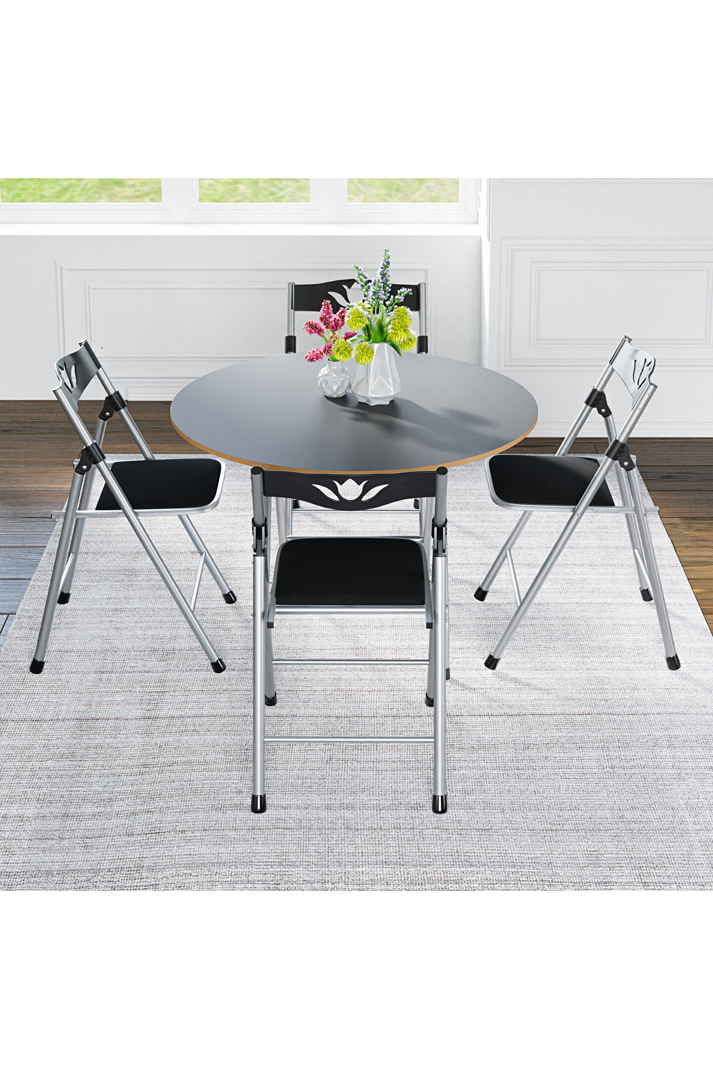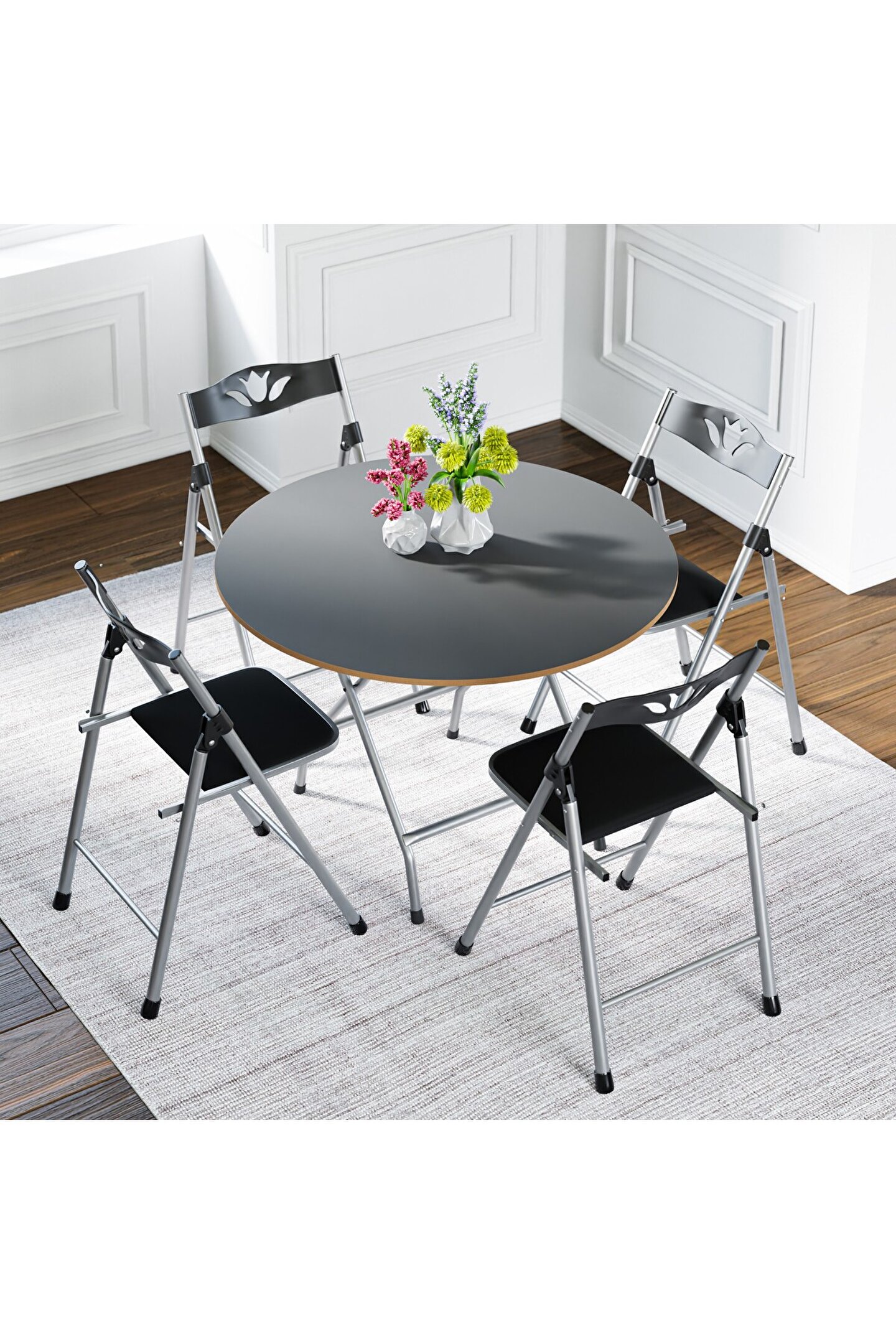 Günlük kullanım için tasarlanmış Katlanır Masa Yuvarlak Kırma Mutfak Masası son derece fonksiyonel bir mobilya grubudur. Masa, 70 çapı bulunan geniş yüzeyi ile çok yönlü kullanımlar sunar. Bu sayede yemekler, çalışmalar veya her türlü sosyal etkinlik için ideal bir alan haline gelir. 70 cm'lik masa yüksekliği, ergonomik bir oturma ve kullanım konforu sağlar, kullanıcıların uzun süre masa başında rahat etmelerine olanak tanır. High gloss kaplama, kolay temizlenebilir özelliği ile bilinir; böylece leke ve kirler hızla silinebilir, masanın bakımı kolaylaşır. Bu malzeme aynı zamanda çizilmelere ve yıpranmalara karşı dayanıklıdır, uzun süreli kullanımlarda bile estetik görünümünü korur. Katlanabilir sandalyeler ise setin pratikliğini artıran bir başka özelliktir. Sandalyeler, kullanılmadığı zamanlarda az yer kaplamak üzere kolayca katlanabilir. Her sandalye, konforlu bir oturma deneyimi için süet kumaş kaplama ve sünger dolgu ile donatılmıştır. Bu özellikler, sandalyelerin sadece şık değil, aynı zamanda uzun oturumlarda bile rahat olmasını sağlar, böylece kullanıcılar yemeklerini veya sosyal etkinliklerini maksimum konforla tamamlayabilir.