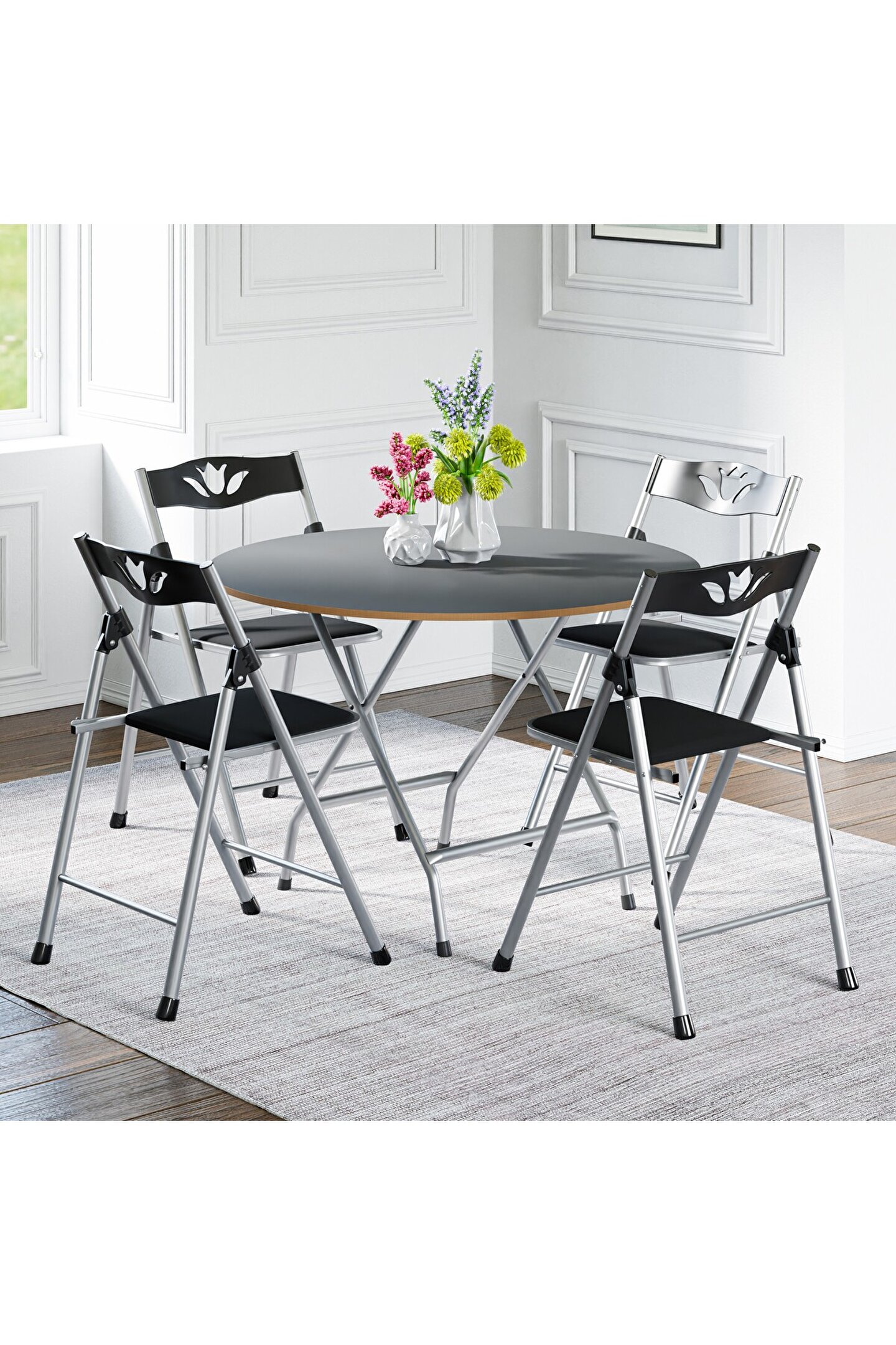 Katlanır Masa Yuvarlak Kırma Mutfak Masası, modern ve işlevsel bir mobilyadır. Bu set, özellikle küçük mutfaklar, yemek odaları veya çok amaçlı alanlar için tasarlanmıştır. 70 çap boyutlarındaki masa, ideal bir yemek yüzeyi sunarken, katlanabilir sandalyeler alanı en verimli şekilde kullanmanıza olanak tanır. Setin tasarımında, Atlantik Çam'ın doğal dokusu ve MDF, görsel bir zenginlik ve modern bir dokunuş ekler. Masa ve sandalyeler, elektrostatik boyalı metal ayaklar sayesinde ekstra sağlamlık kazanır. Bu yapı, günlük kullanıma uygun dayanıklılık sunarken, şık bir görünümle mekanınızı güzelleştirir. Katlanabilir masa ve sandalyeler, küçük yaşam alanlarında büyük bir avantaj sağlar. Setin kolay katlanabilir olması, sınırlı depolama alanlarında bile rahatlıkla saklanabilmesine imkan verir. Bu özellik, özellikle apartman dairesi gibi yerlerde yaşayanlar için idealdir, kullanılmadığı zamanlarda masa ve sandalyeleri kolayca kaldırıp alan açabilirsiniz. Set, fonksiyonelliği ve şıklığı bir arada sunarak, her türlü iç mekan dekorasyonuna uyum sağlayacak şekilde tasarlanmıştır.