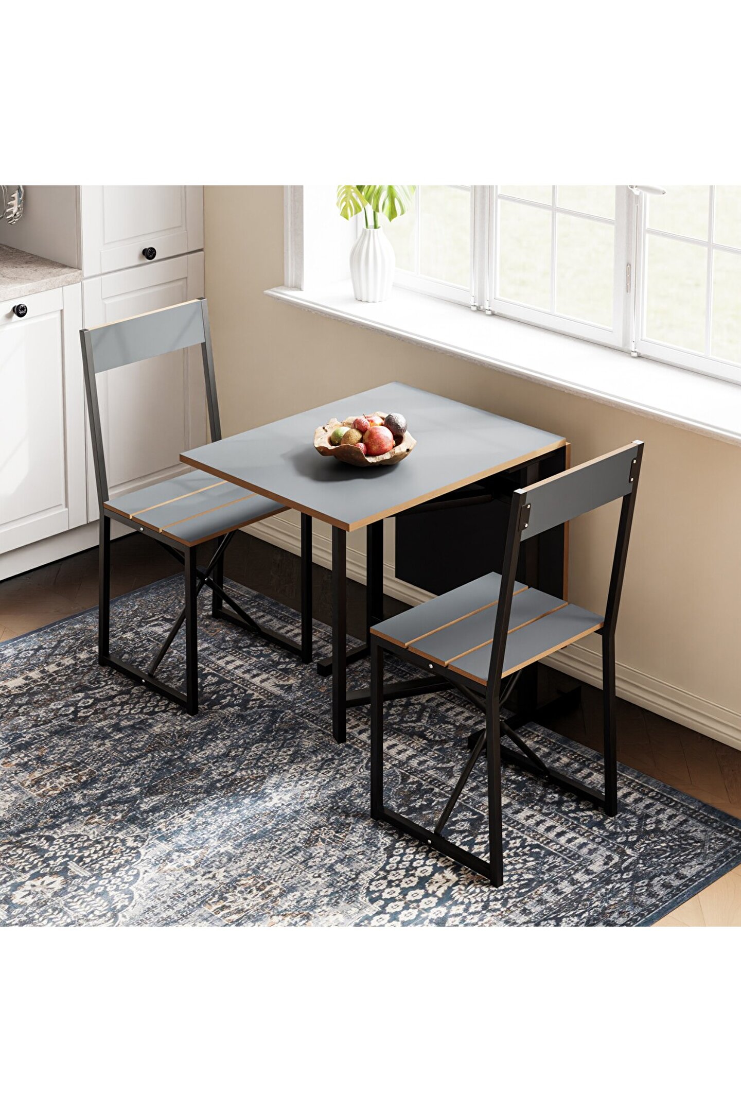Setin tasarımı, modern ve minimalist çizgileri bir araya getirir, bu sayede hem işlevsel hem de estetik bir görünüm sunar. Katlanabilir yapı, masa ve sandalyelerin kolayca saklanabilmesine imkan tanır, bu da özellikle misafir ağırlama gibi durumlar için ekstra alan yaratılmasını sağlar. Ürün, günlük kullanım için de uygundur, zira montajı ve kullanımı oldukça pratiktir.