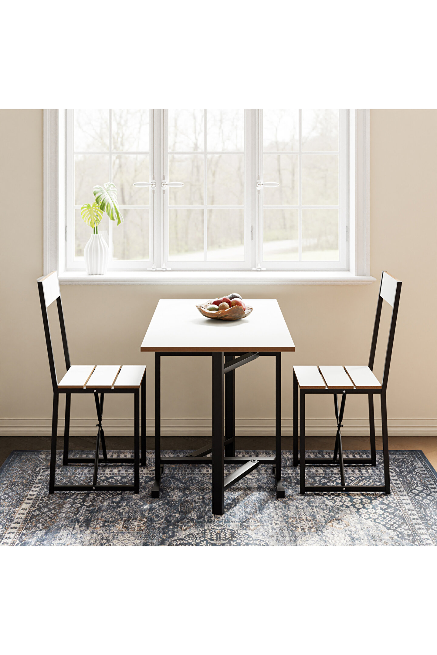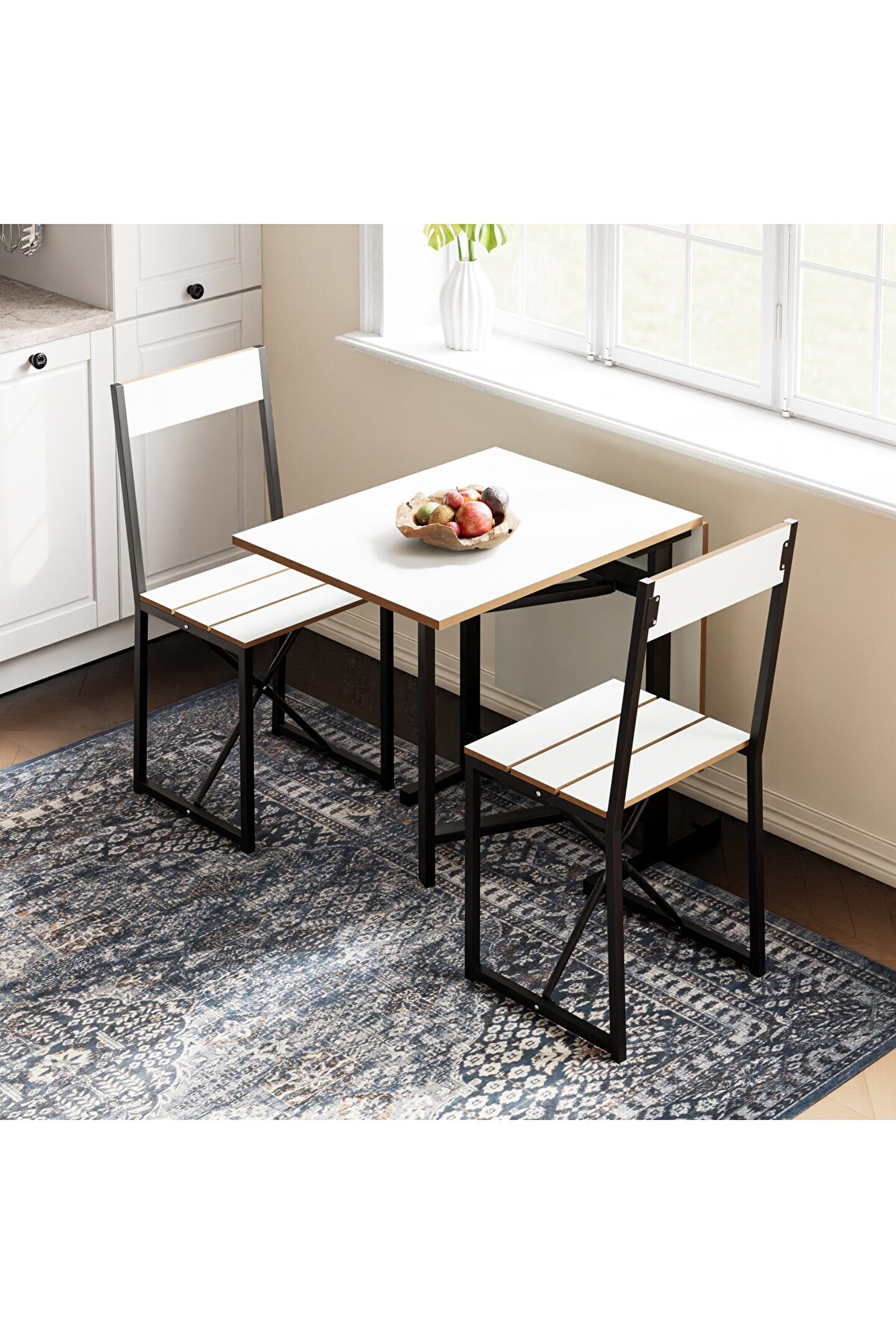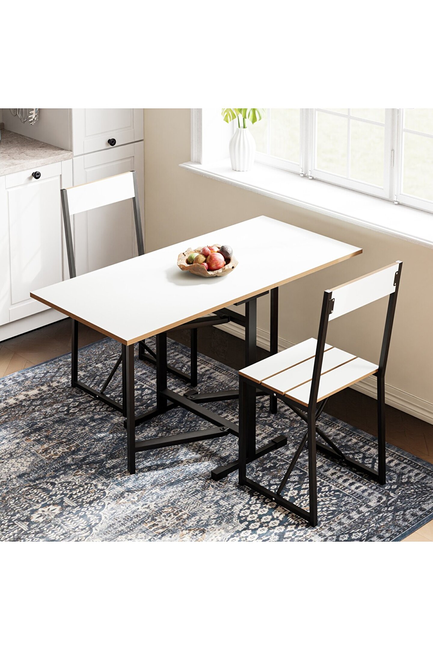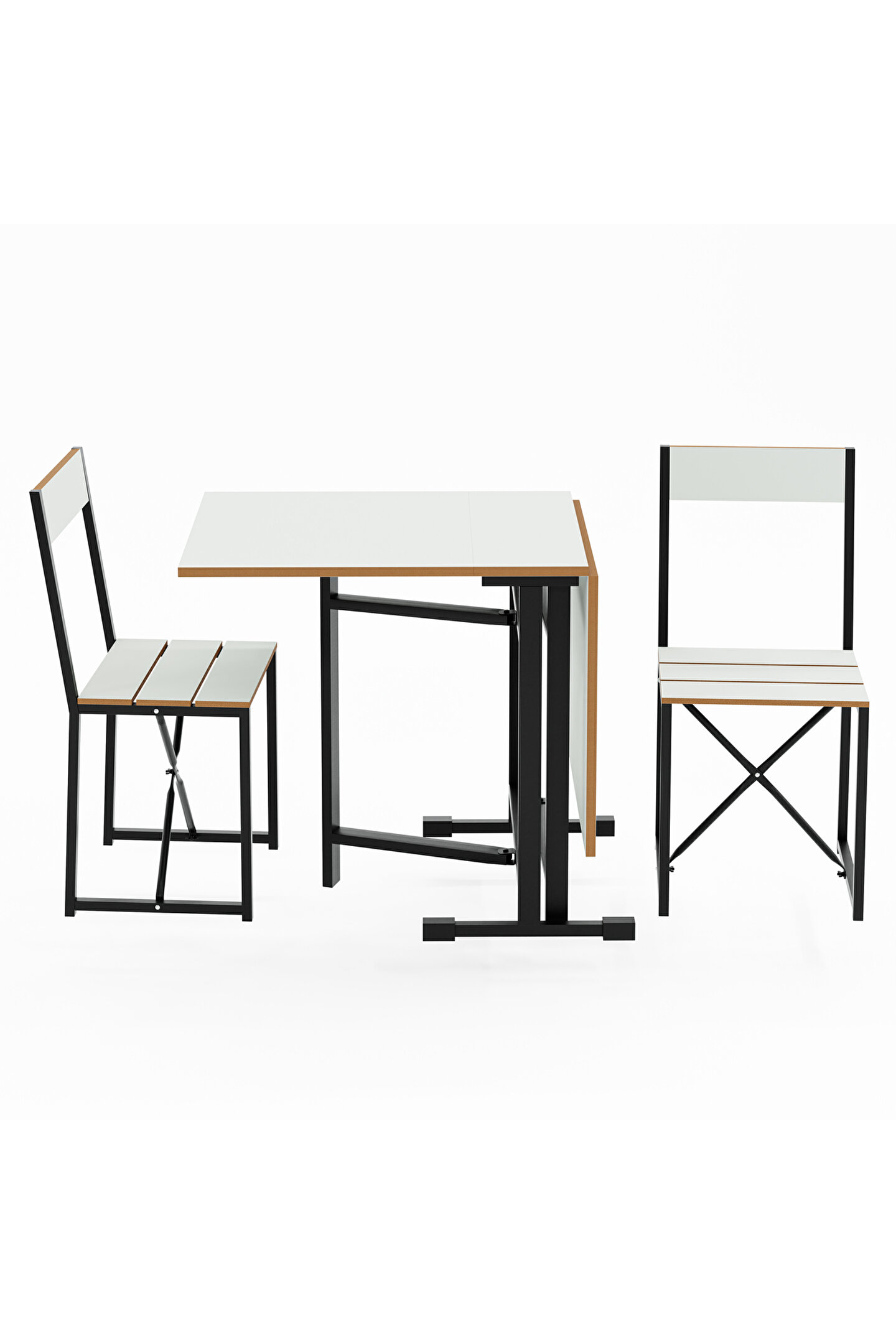 Setin tasarımı, modern ve minimalist çizgileri bir araya getirir, bu sayede hem işlevsel hem de estetik bir görünüm sunar. Katlanabilir yapı, masa ve sandalyelerin kolayca saklanabilmesine imkan tanır, bu da özellikle misafir ağırlama gibi durumlar için ekstra alan yaratılmasını sağlar. Ürün, günlük kullanım için de uygundur, zira montajı ve kullanımı oldukça pratiktir.