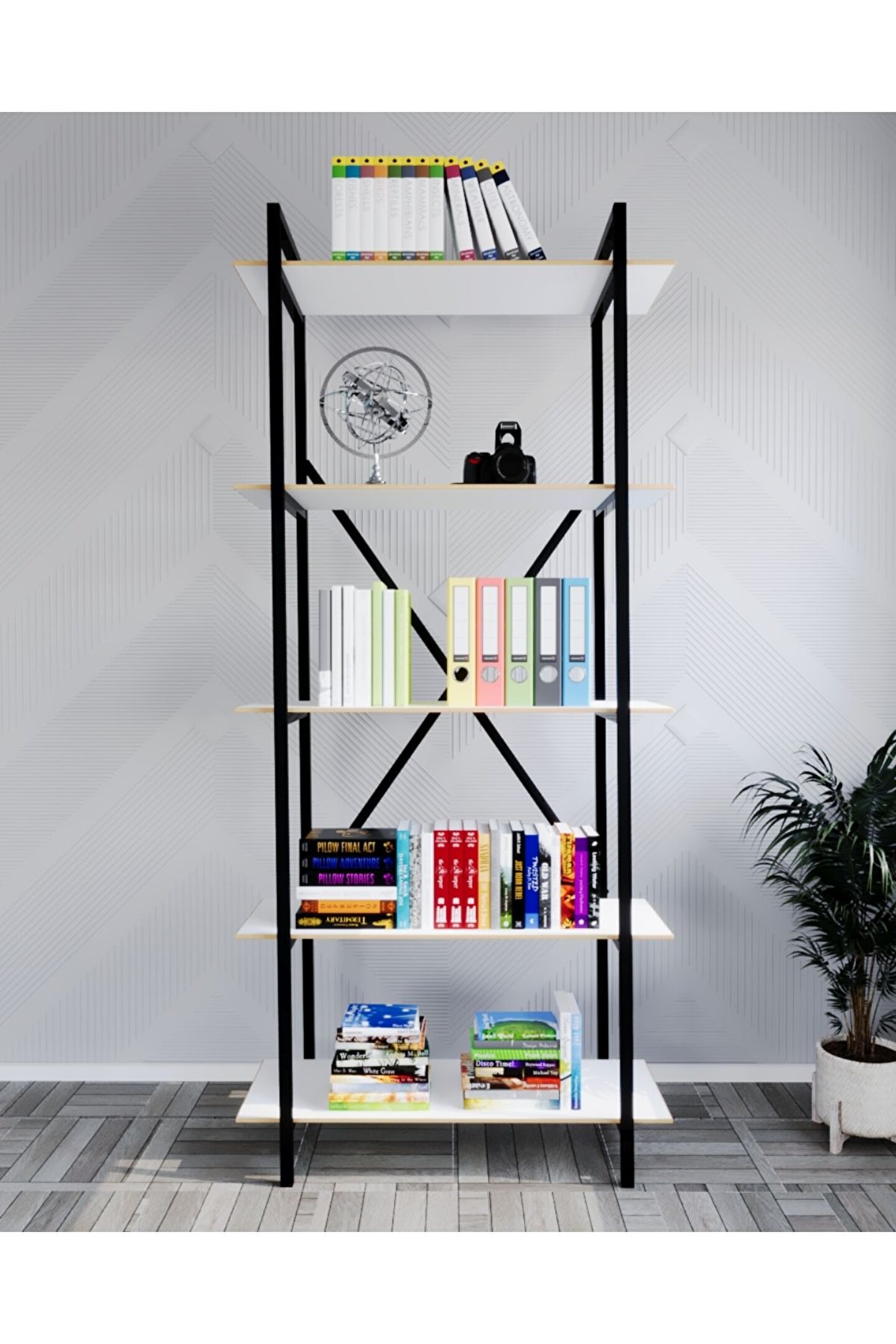 arayanların ihtiyaçlarına yüksek oranda yanıt veren Metal Kitaplık Raf 5 Raflı Kütüphane, salonların daha şık, özgün, moden ve benzersiz bir görünüm kazanmalarını sağlar. Fazla eşyaların saklanmasına yardımcı olan Metal Kitaplık Raf 5 Raflı Kütüphane, diğer yandan iç mekânın dağınık görünmesini önler. Her çeşit salon dekorasyonu ile uyumlu bir görüntüyü teşvik eder.