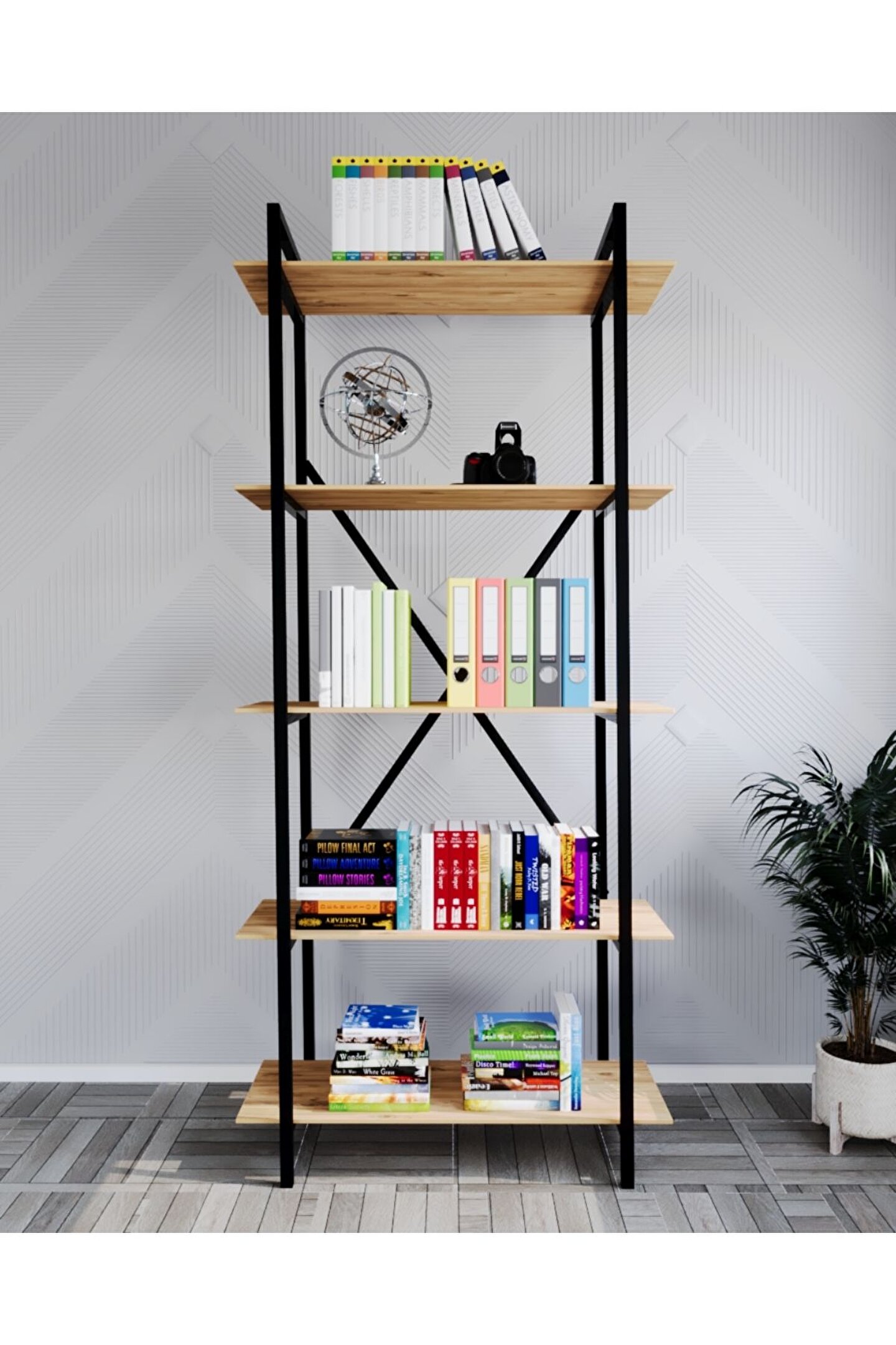 arayanların ihtiyaçlarına yüksek oranda yanıt veren Metal Kitaplık Raf 5 Raflı Kütüphane, salonların daha şık, özgün, moden ve benzersiz bir görünüm kazanmalarını sağlar. Fazla eşyaların saklanmasına yardımcı olan Metal Kitaplık Raf 5 Raflı Kütüphane, diğer yandan iç mekânın dağınık görünmesini önler. Her çeşit salon dekorasyonu ile uyumlu bir görüntüyü teşvik eder.