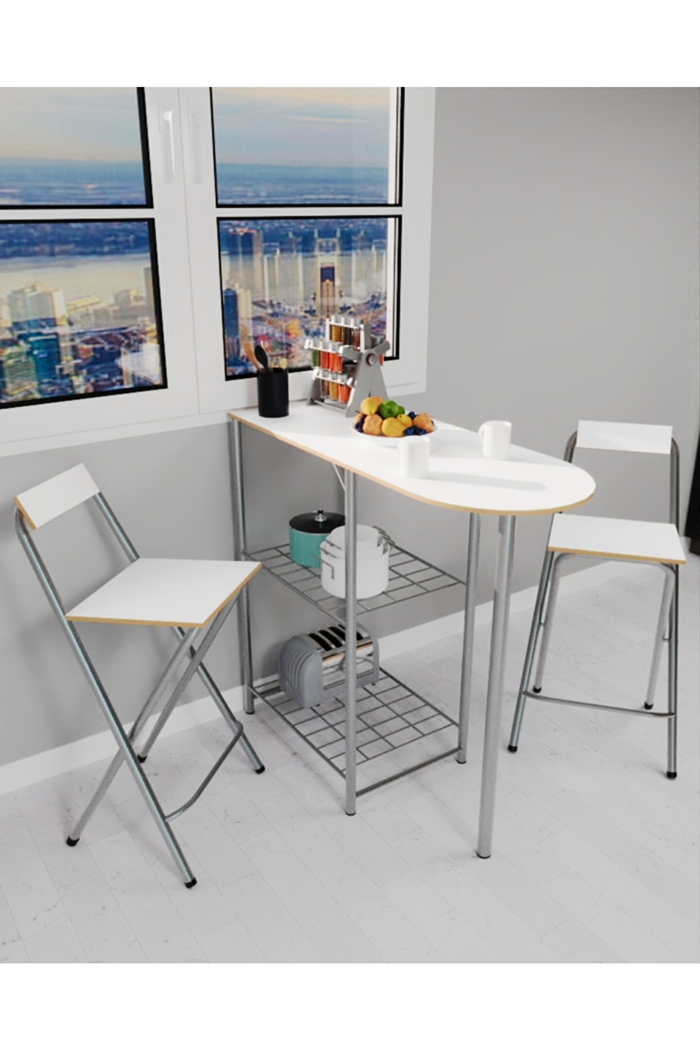 Güzelkan Mutfak Bar Masa Sandalye Takımı Katlanır Bar Sandalye 2 Kişilik Mutfak Masası