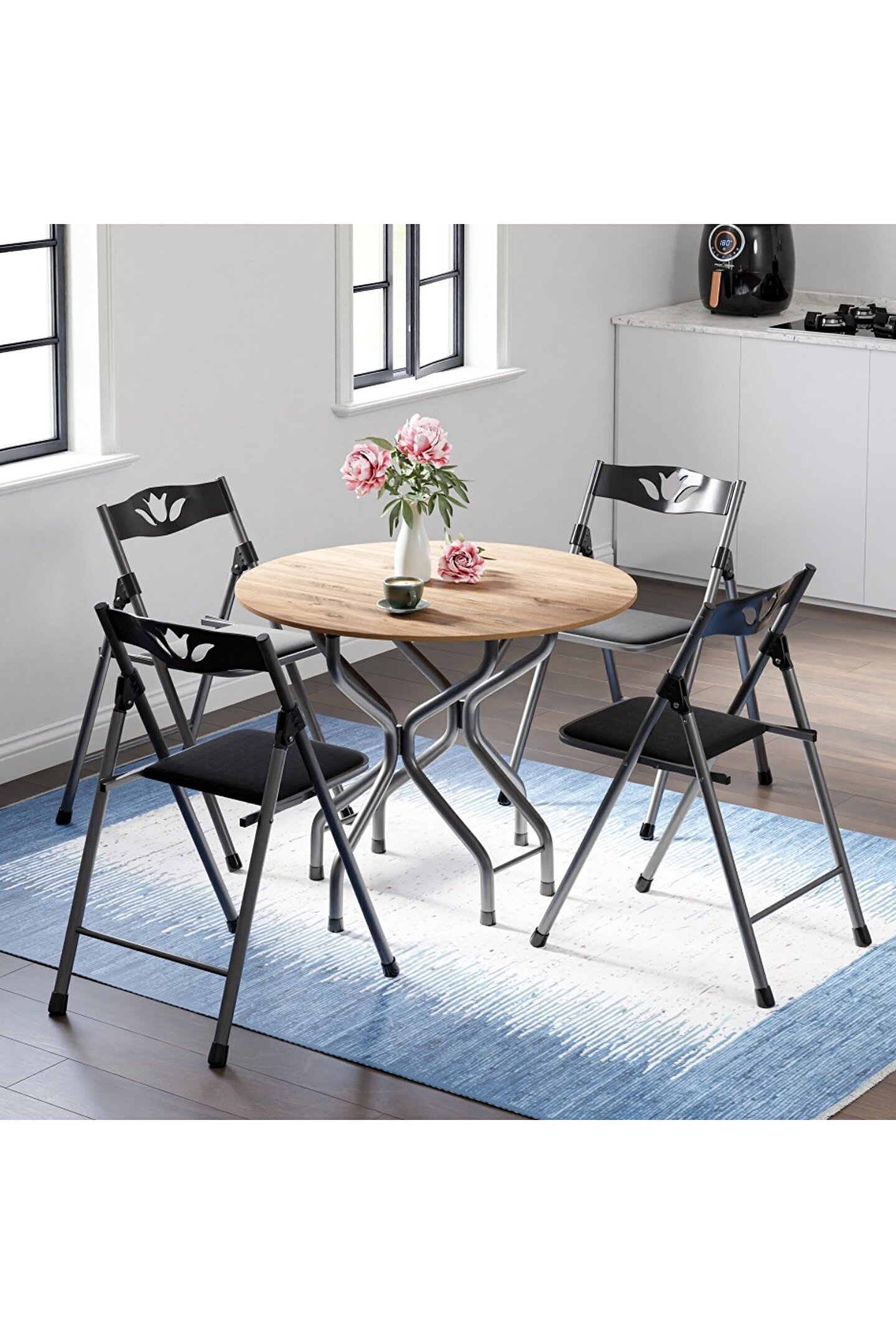 Mutfak Masa Sandalye Takımı Bahçe Yemek Masa Seti Yuvarlak,