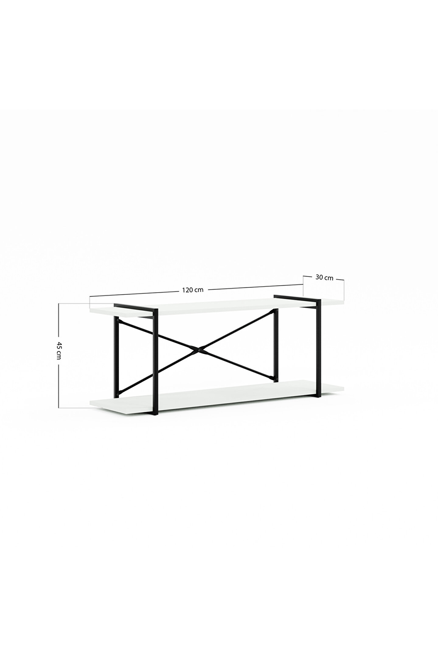 Televizyon Ünitesi Tv Standı Raflı Metal Sehpa, modern ve minimalist çizgileri ile dikkat çekici bir tasarıma sahiptir. Ürün, 120 cm genişlik, 30 cm derinlik ve 45 cm yükseklik ölçülerine sahip olup, ideal boyutlarıyla evinizde çok fazla yer kaplamaz. rengi MDF tabla, sıcak ve doğal bir hava katarken, metal iskelet yapı stabilite ve dayanıklılık sunar.