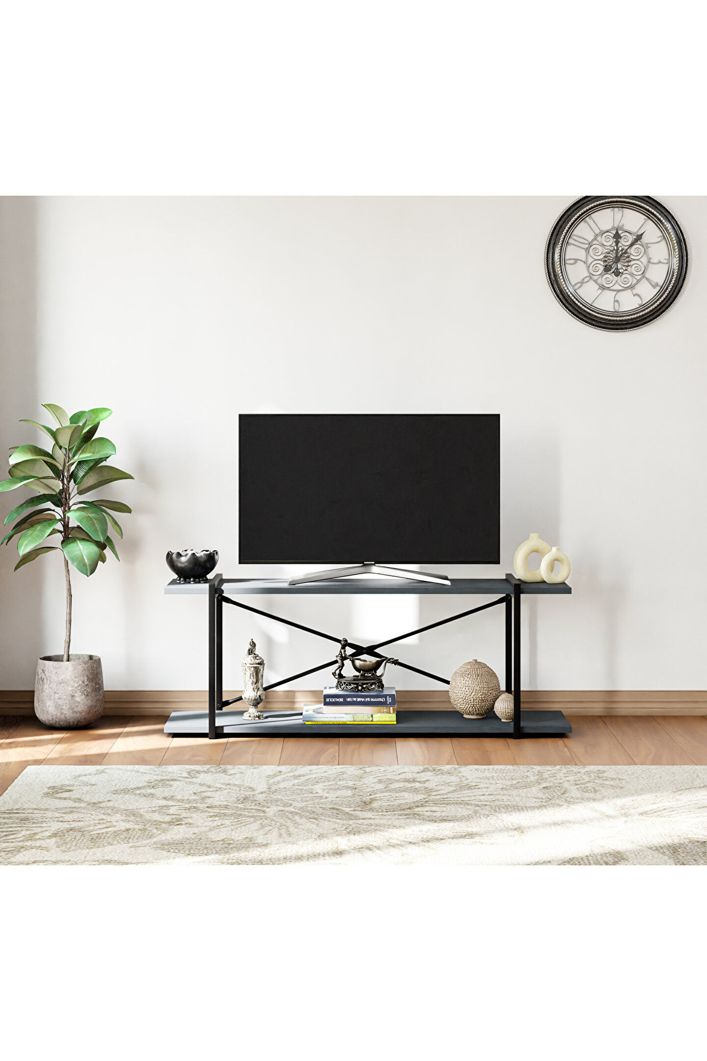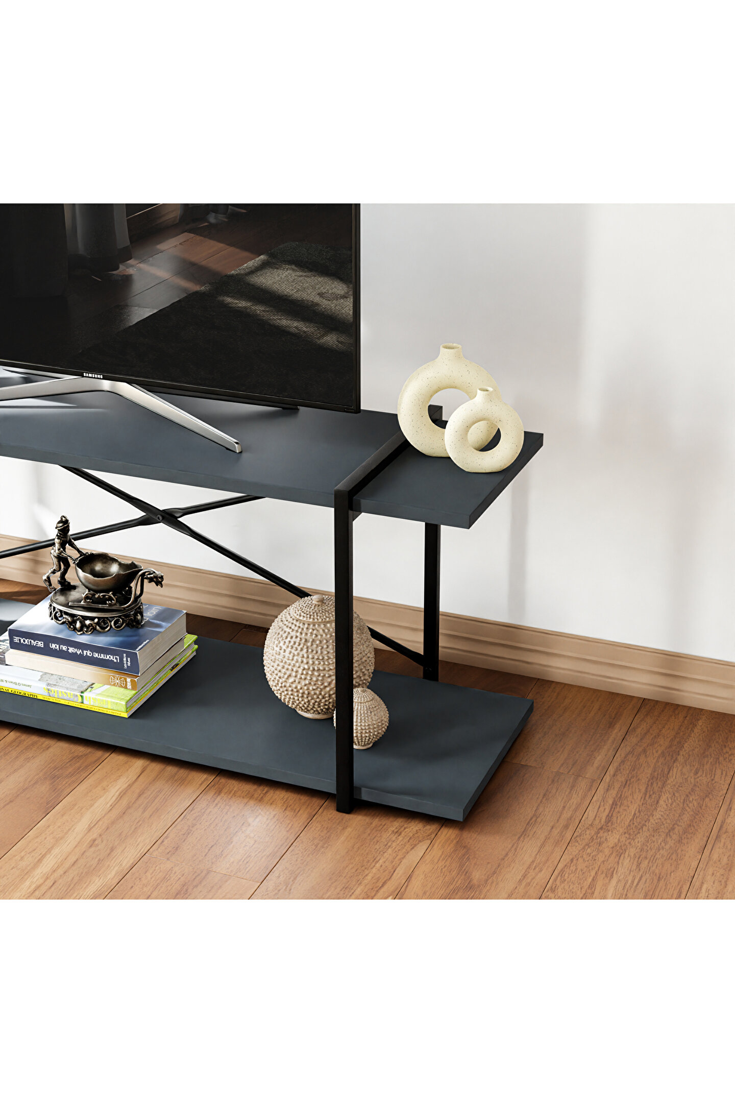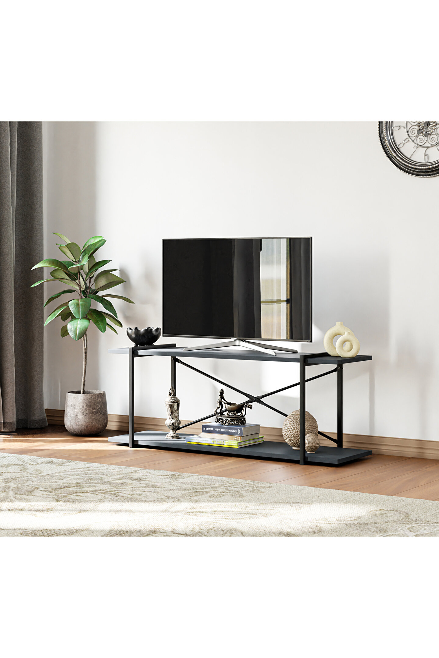 Ürünün tasarımı, geniş ve düz üst yüzeyi sayesinde büyük ekran televizyonlarınızı rahatça desteklerken, alt raflar medya bileşenlerinizi ve diğer eşyalarınızı düzenli bir şekilde saklamanıza olanak tanır. Bu özellikler, yaşam alanınızda hem işlevsel hem de estetik bir düzen oluşturmanıza yardımcı olur.