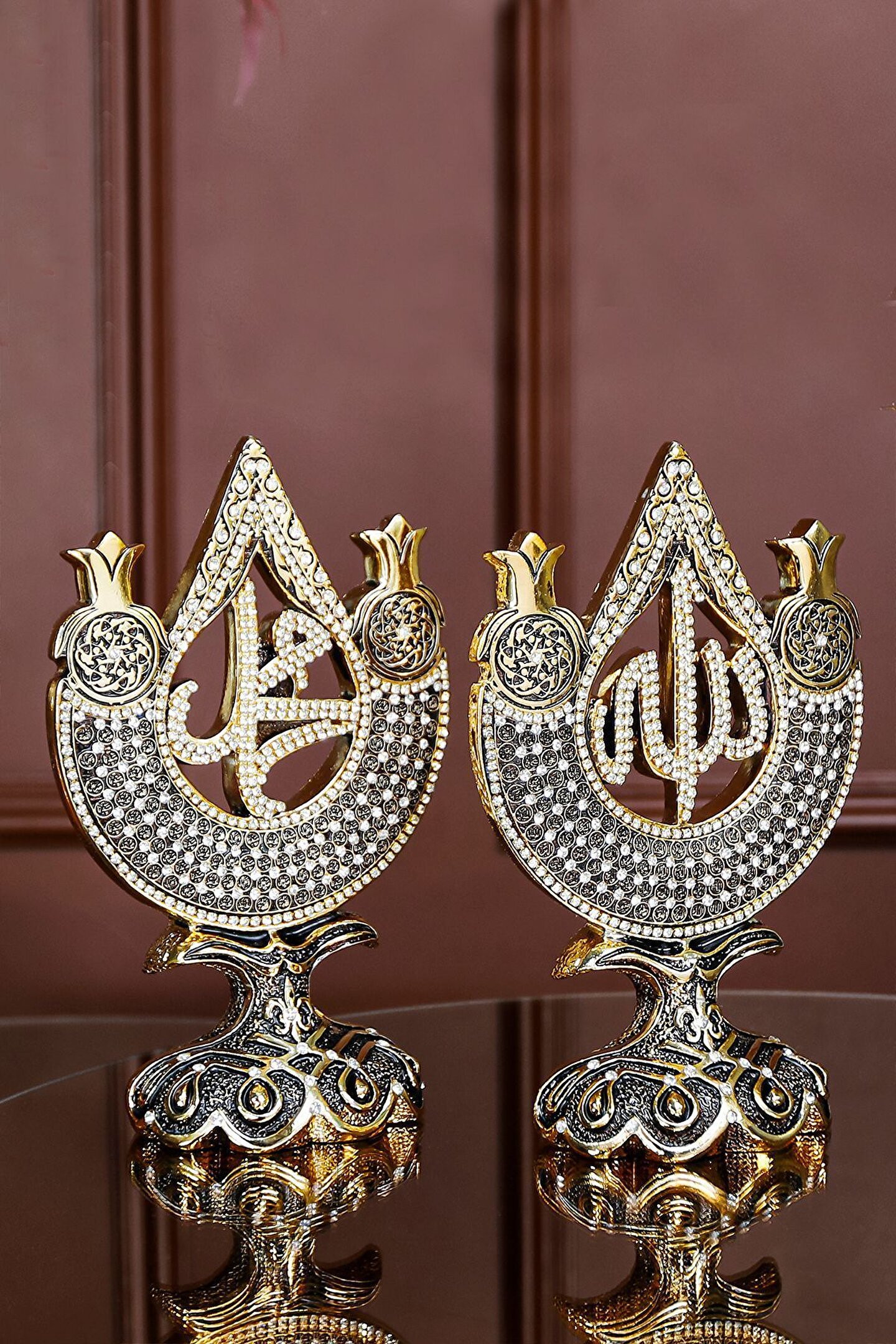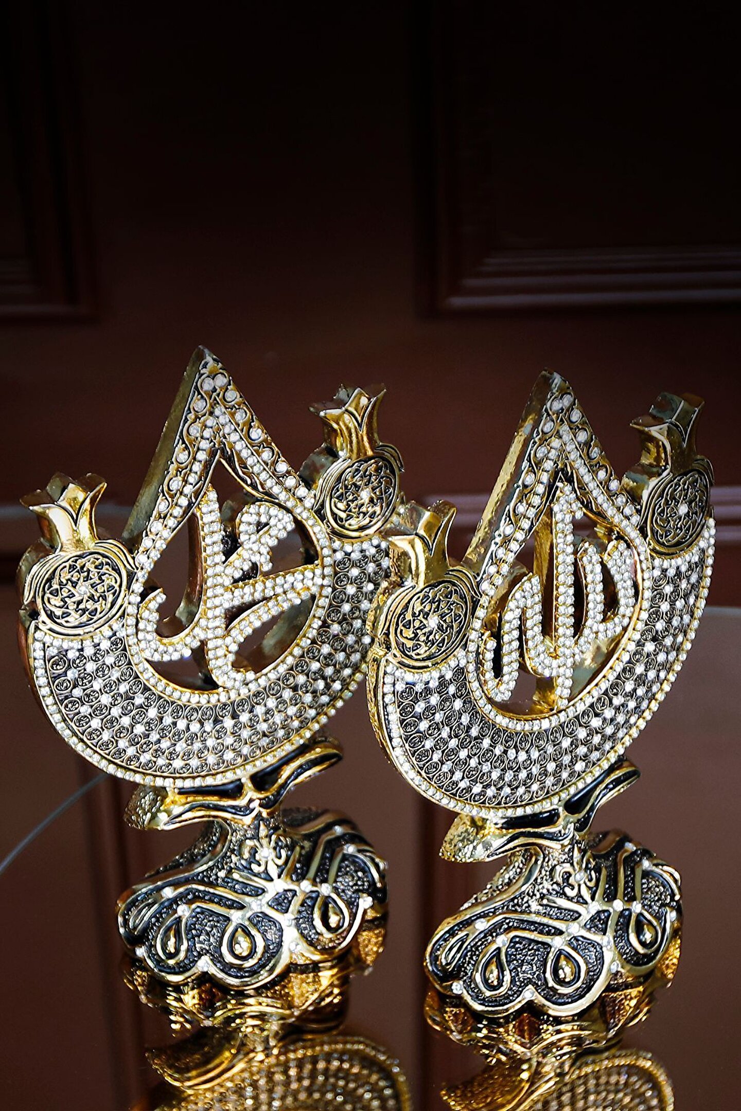İki Lafız, Bir Set: Allah (C; C) ve Muhammed (S; A; S) Aksesuar Seti! ?? Bu muazzam set, kalbinizdeki imanın ve sevginin bir ifadesi; Tasarımın gövdesinde Allahu Teala'nın en güzel isimleri yani "Esmaül Hüsna" bulunuyor; Üstünde ise bir yanda "Allah", diğer yanda "Muhammed" lafızları, bir arada anlam ve aşkla buluşuyor; ? Her detayı, özenle tasarlanmış ve kalp şeklindeki bu aksesuar seti, imanın ve sevginin güzelliklerini gündelik hayatınıza taşıyor; Bu zarif ve anlamlı set, Allah'a ve Sevgili Peygamberimize duyulan derin sevginizi simgeliyor; ? Bu özel set, günlük yaşamınıza manevi bir dokunuş katmak için mükemmel bir yol olarak sizleri bekliyor; Evde, ofiste veya sevdiklerinizin bulunduğu mekanlarda, sizi çok seven iki sevgiliyi size hatırlatırken, güzellik ve huzur hissini deneyimleme fırsatı sunuyor; ?? Sevgiyi ve imanı bir araya getiren bu setle, gündelik yaşamınızı anlam dolu kılın; Allah ve Muhammed aşkını kalplerinizde taşıyan bu zarif aksesuar seti, her anınızı güzellikle doldursun; ??? Hemen sipariş için ürün kodu: CN 48 ? Ürün Özellikleri: Orijinal Tasarım El Yapımı ve Yüksek Kaliteli Metalize Sert Polyester Malzeme Altın Kaplama 30x20 cm 1490 gr El İşçiliği ? Kullanım Alanları: Yaşam alanlarına zarafet katmak için, Manevi bir hediye olarak, Dekoratif süs olarak, Anneye, Babaya, Eşe Hediye olarak, Yıldönümü, Doğum Günü, Terfi, Ev ve Ofis Hediyesi Olarak, Bereketin simgesi olması için, Maneviyatı hatırlatması için, Başarı ve sanatsal üretime ilham olması için, Kurumsal hediye ve diğer alanlarda kullanılabilir;