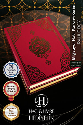 Rahle Boy Bilgisayar Hatlı Kuran-ı Kerim, şık cilt bezi kapak tasarımı, kaliteli şamua kağıdı ve kolay okunabilir bilgisayar hattı ile hazırlanmıştır. Rahle boy (20x28 cm) ölçüsü sayesinde rahat bir okuma deneyimi sunar. İbadetlerinizde ve günlük okumalarınızda göz yormayan yapısıyla tercih edilen bir eserdir.