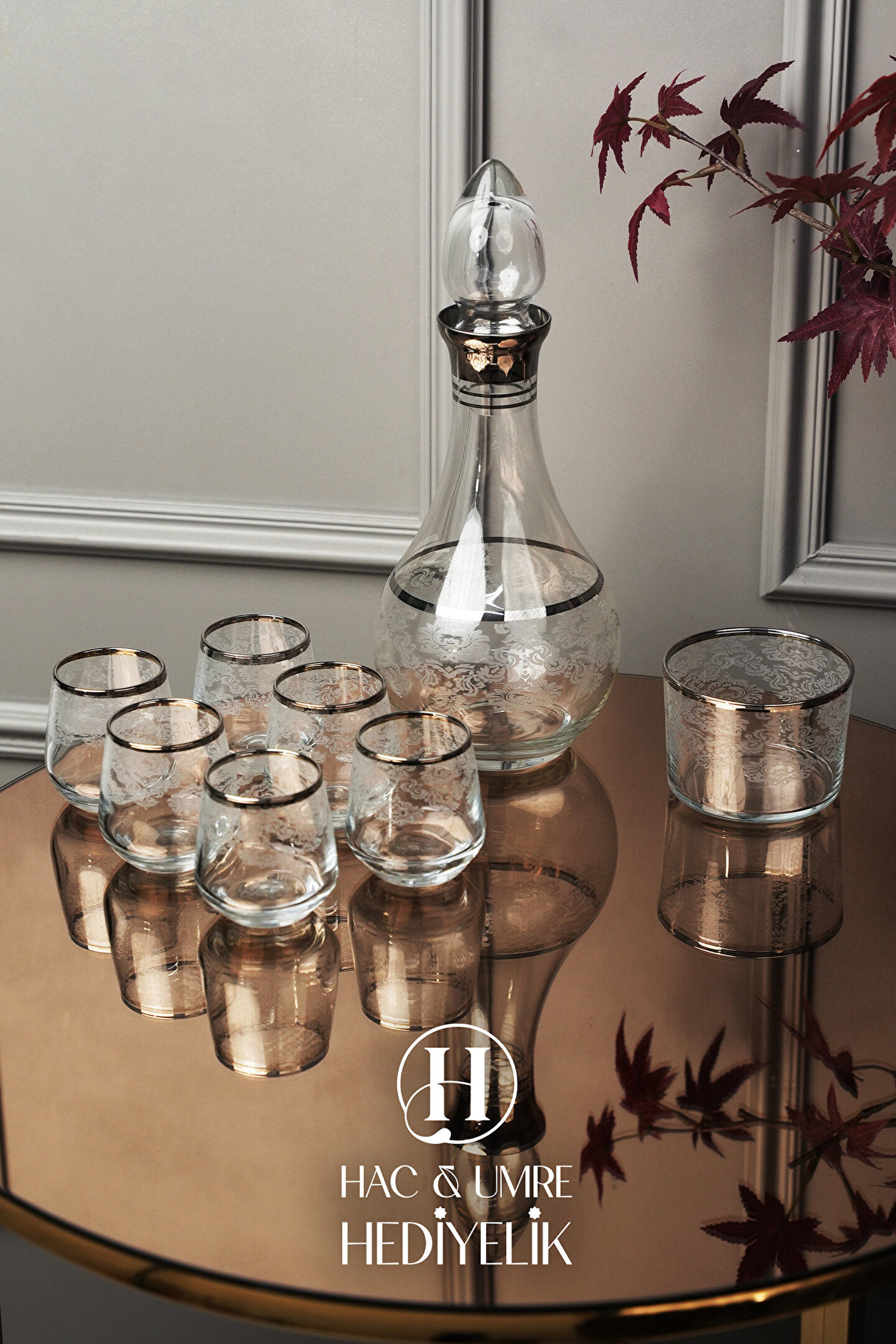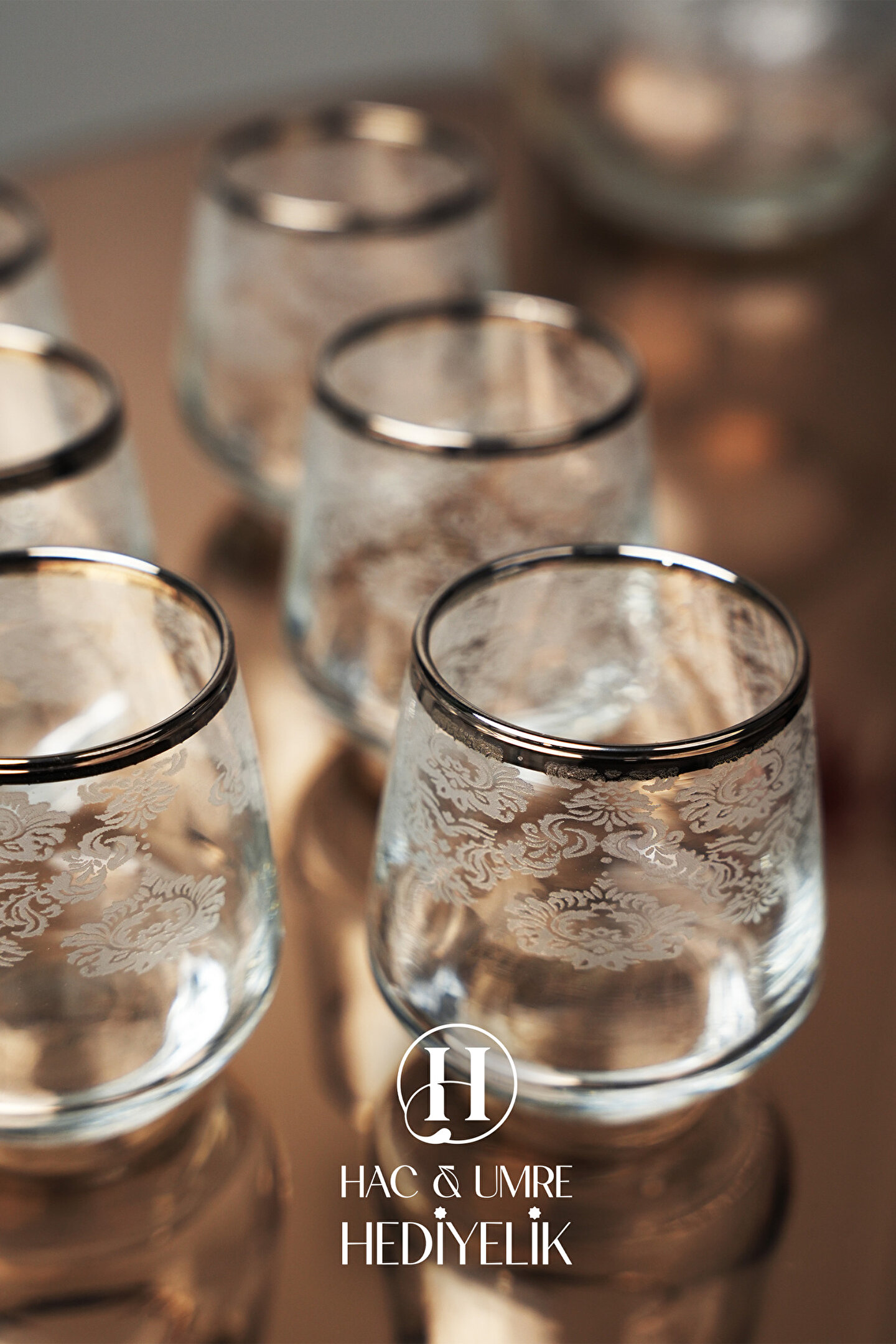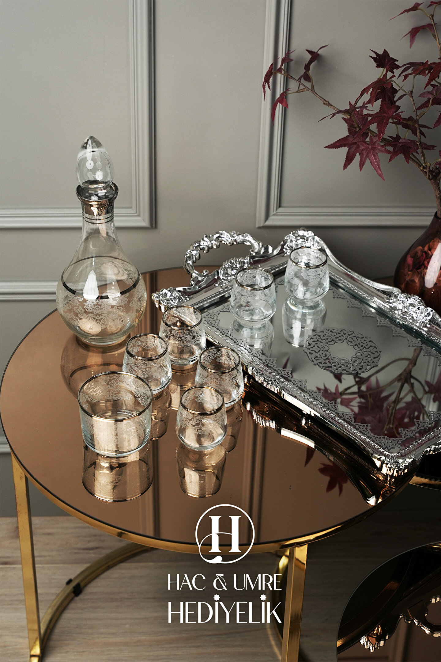 Hac Umre Hediyelik Dekoratif Cam Zemzem İkram Takımı 8 Parça | Zemzem ve Mevlid Sunum Seti
