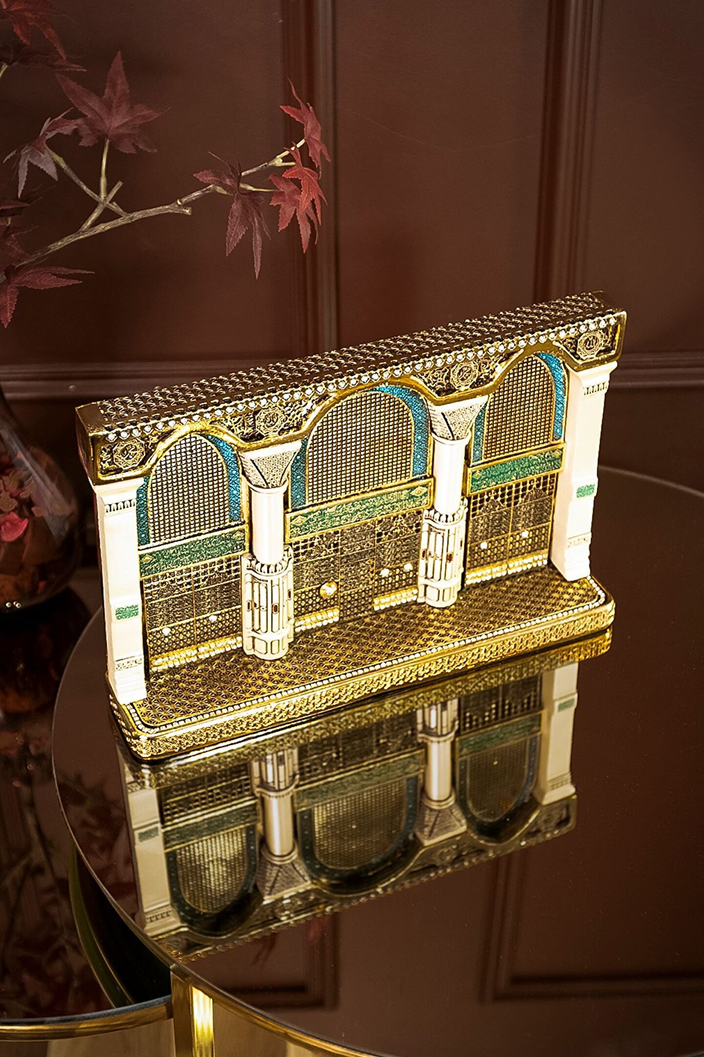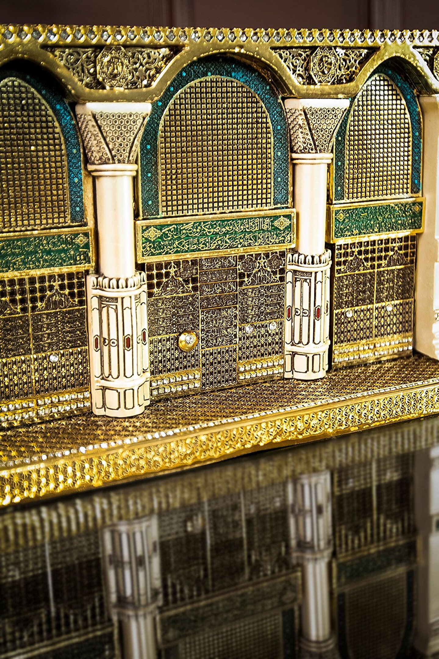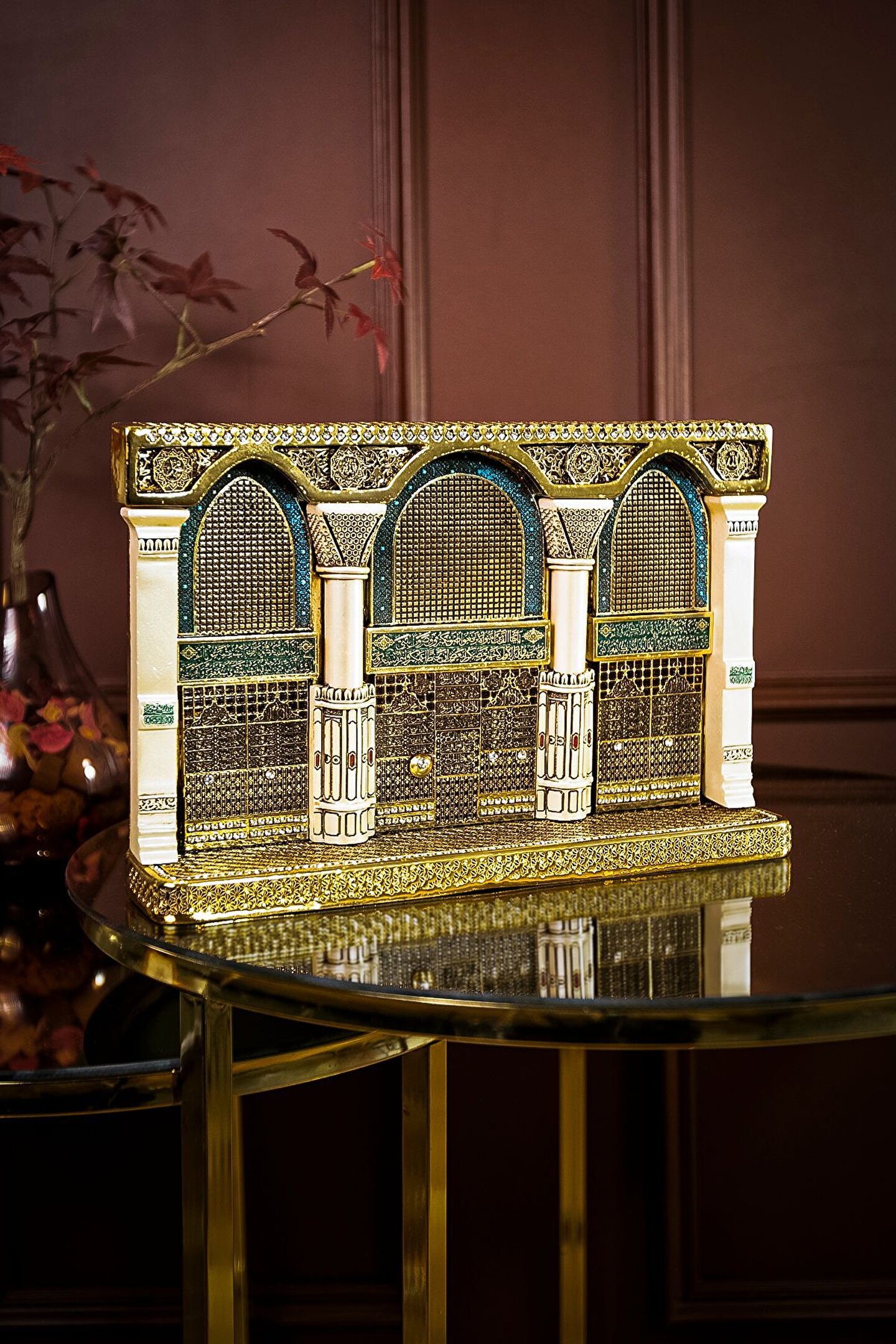 Mescidi Nebevi Selamlama Kapısı Dekoratif Figürü? Bu özel biblo, Mescidi Nebevi'nin eşsiz mimarisindeki selamlama kapısının zarif bir temsiliyle ön plana çıkıyor; Mescidi Nebevi, İslam'ın kutsal mekanlarından biri olan Medine'de bulunan bu muazzam cami, Peygamberimizin (S; A; V) kabrine ev sahipliği yapan kutsal mekandır; ? Selamlama kapısı, Mescidi Nebevi'nin girişinde yer alan ve ziyaretçileri efendimizi selamlamaya yönlendiren özel bir kapıdır; Bu biblo, bu kutsal mekanın sembolik bir temsilini sunarak, evinize veya ofisinize manevi bir atmosfer katmayı amaçlıyor; ? Her bir detayı özenle işlenmiş olan bu eser, İslam'ın kutsal mirasını yansıtarak, evinizi sadece estetik bir güzellikle donatmanın ötesinde, manevi bir anlamla dolduruyor; Mescidi Nebevi Selamlama Kapısı Biblosu, gönlü efendimizin sevgisiyle yanıp tutuşanlar için tasarlandı; Yaşam alanlarınızı bu anlamlı eserle güzelleştirmek için hemen keşfedin! ? Ürün Özellikleri: Orijinal Tasarım El Yapımı ve Yüksek Kaliteli Metalize Sert Polyester Malzeme Altın Kaplama 30x20 cm 2135 gr El İşçiliği ? Kullanım Alanları: Yaşam alanlarına zarafet katmak için, Manevi bir hediye olarak, Dekoratif süs olarak, Anneye, Babaya, Eşe Hediye olarak, Yıldönümü, Doğum Günü, Terfi, Ev ve Ofis Hediyesi Olarak, Bereketin simgesi olması için, Maneviyatı hatırlatması için, Başarı ve sanatsal üretime ilham olması için, Kurumsal hediye ve diğer alanlarda kullanılabilir;