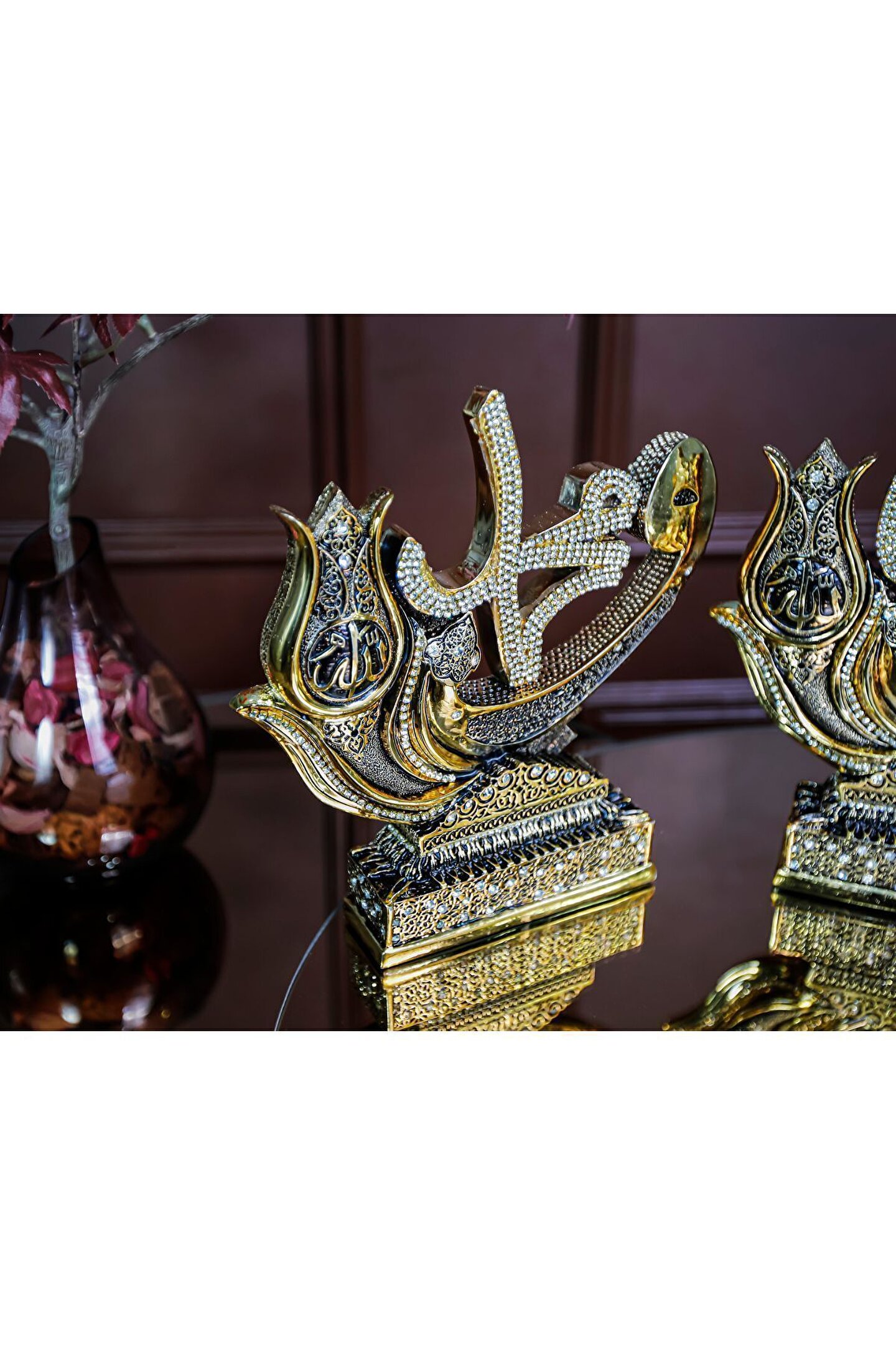 Sanatın İlahi Yansıması: Vav, Lale ve Lafızlar Dekoratif Biblo Seti ? Bu özel biblo, zarif vav ve lale motifleriyle süslenmiş, ortasında ise Allah ve Muhammed lafzlarıyla taçlandırılmıştır; Her detayı özenle işlenmiş bu eser, estetikle mananın uyumunu yansıtarak evinize benzersiz bir güzellik katıyor; Evinizi veya ofisinizi bu özel biblo ile süsleyerek, her bakışta sanatın ve İlahi kudretin gölgesini hissedebilirsiniz; Ayrıca sevdikleriniz için hediyelik olarak tercih edebilirsiniz ? Hemen sipariş için ürün kodu: CN 105 ? Ürün Özellikleri: Orijinal Tasarım El Yapımı ve Yüksek Kaliteli Metalize Sert Polyester Malzeme Altın Kaplama 20x23 cm 840+785 gr El İşçiliği ? Kullanım Alanları: Yaşam alanlarına zarafet katmak için, Manevi bir hediye olarak, Dekoratif süs olarak, Anneye, Babaya, Eşe Hediye olarak, Yıldönümü, Doğum Günü, Terfi, Ev ve Ofis Hediyesi Olarak, Bereketin simgesi olması için, Maneviyatı hatırlatması için, Başarı ve sanatsal üretime ilham olması için, Kurumsal hediye ve diğer alanlarda kullanılabilir;