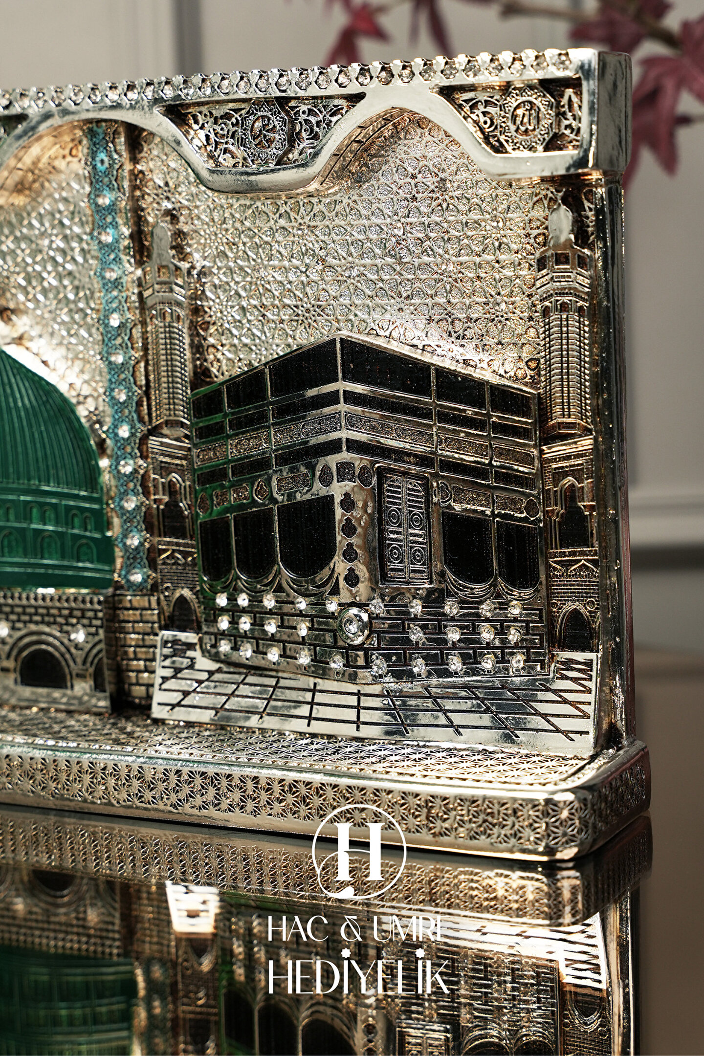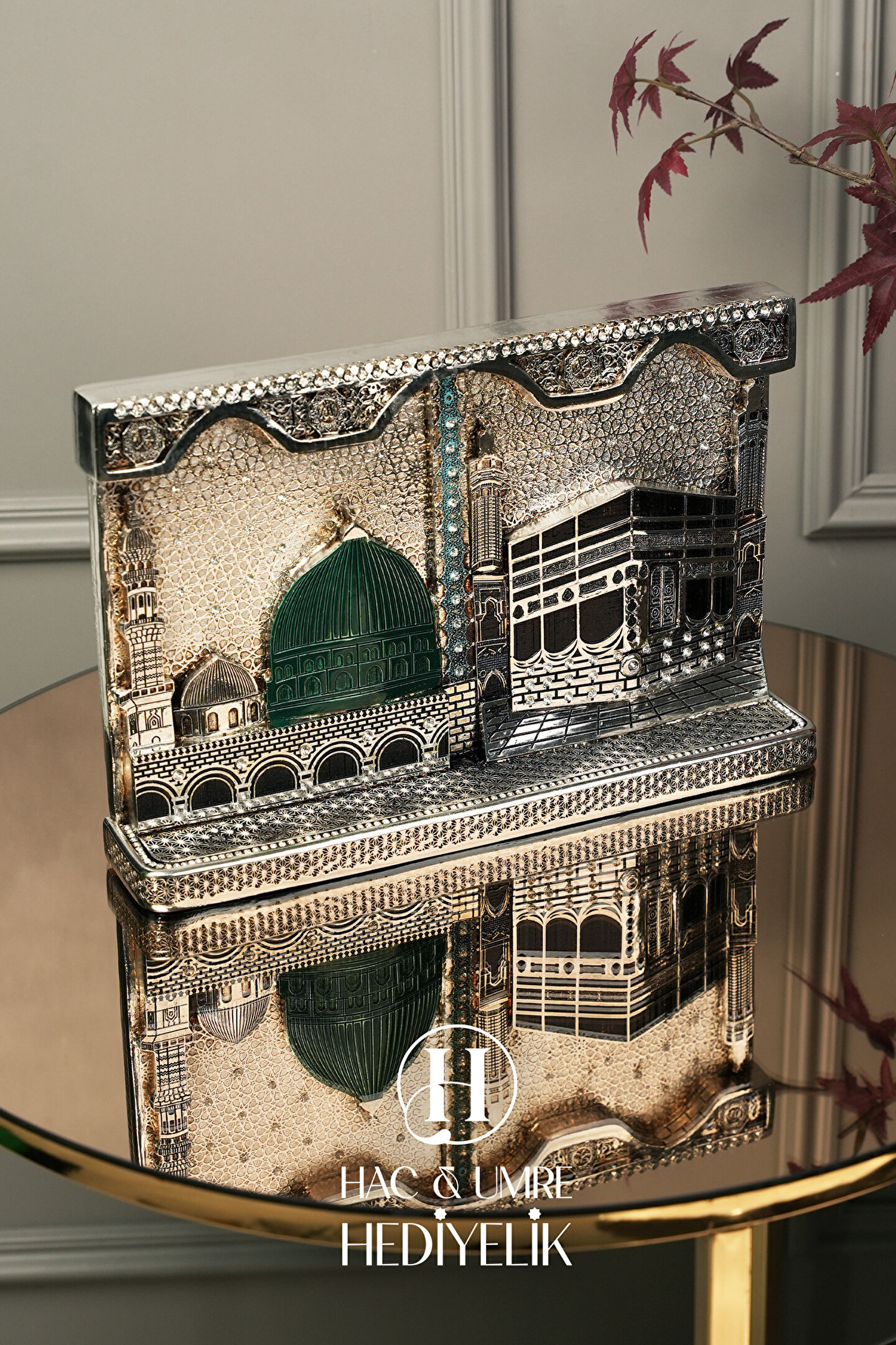 Hac Umre Hediyelik Hac Umre Hediyesi | İslami Dekor | Kabe ve Mescidi Nebevi Gümüş Dekor | İkili Mekke Medine Biblosu