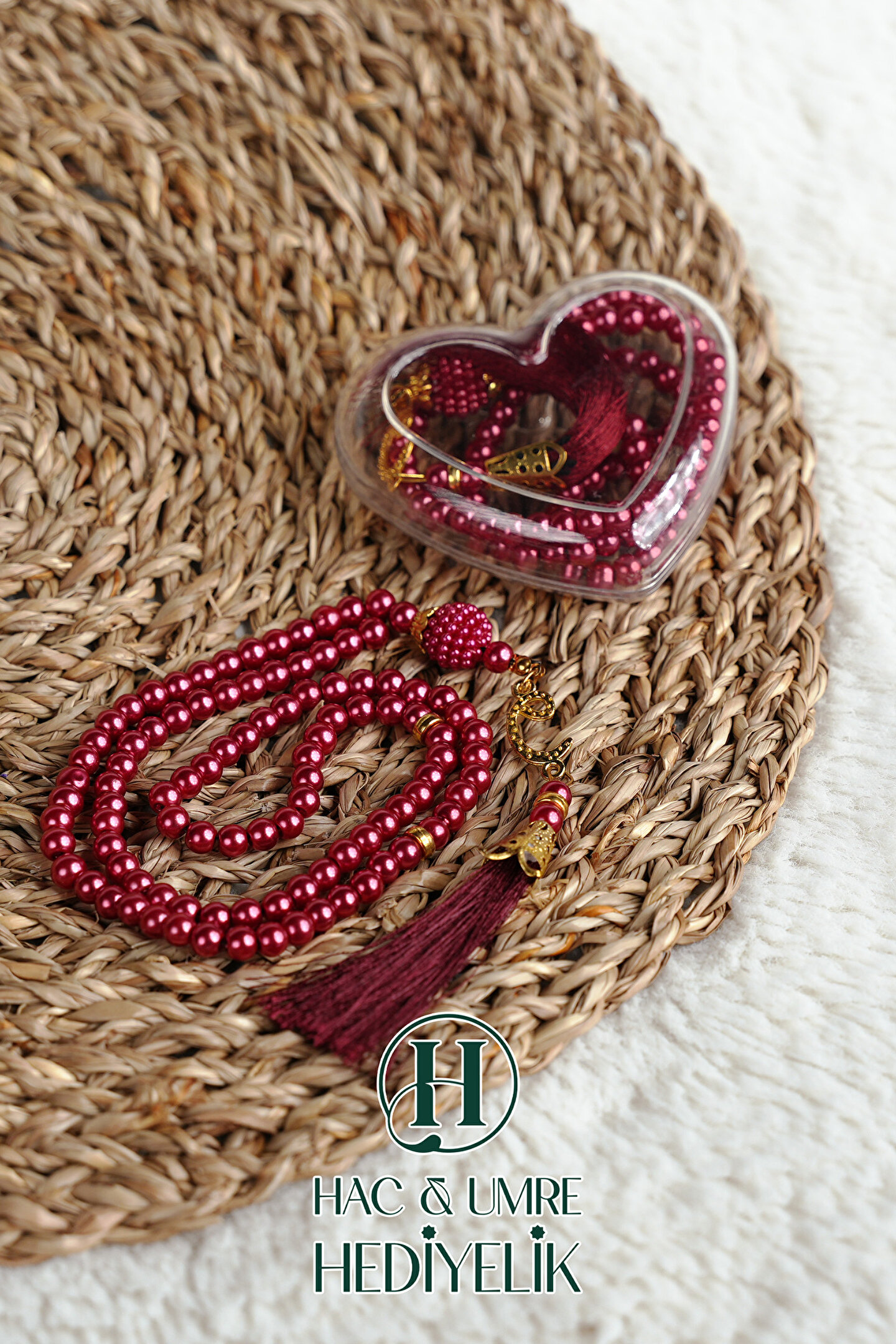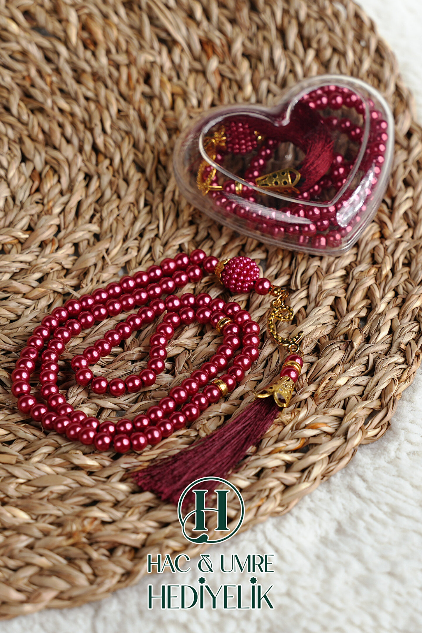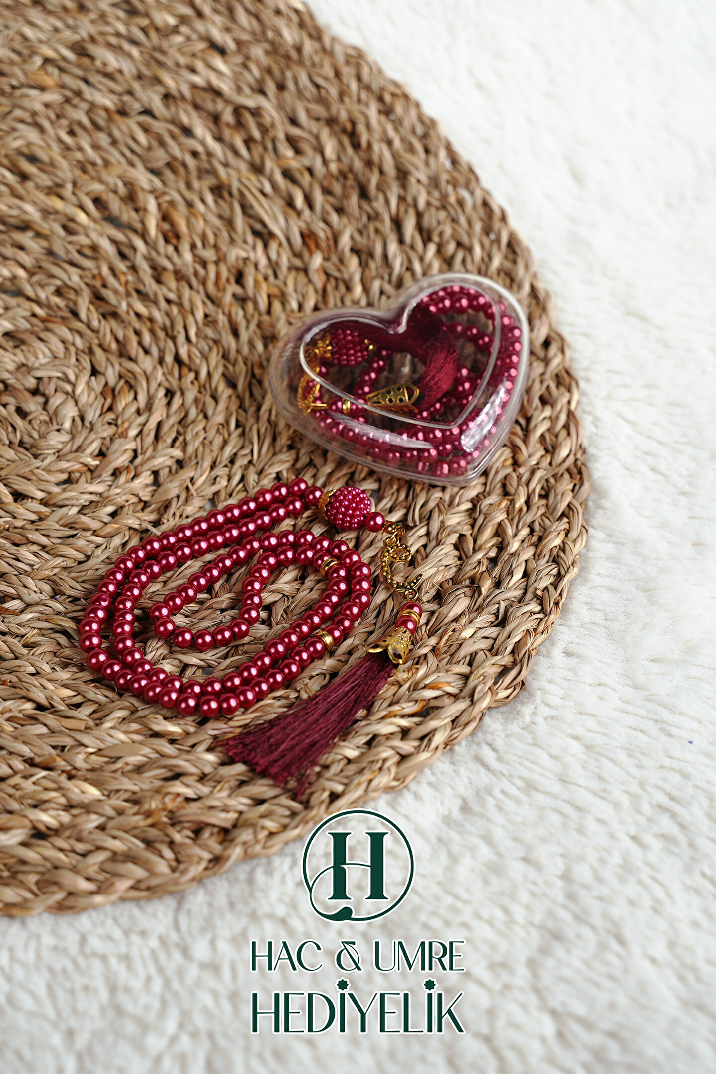 Hac Umre Hediyelik Hediyelik Tesbih | 99lu İnci Tesbih Vav İmameli Püsküllü Kalp Kutulu | Hac Umre Gün Davet Hediyesi