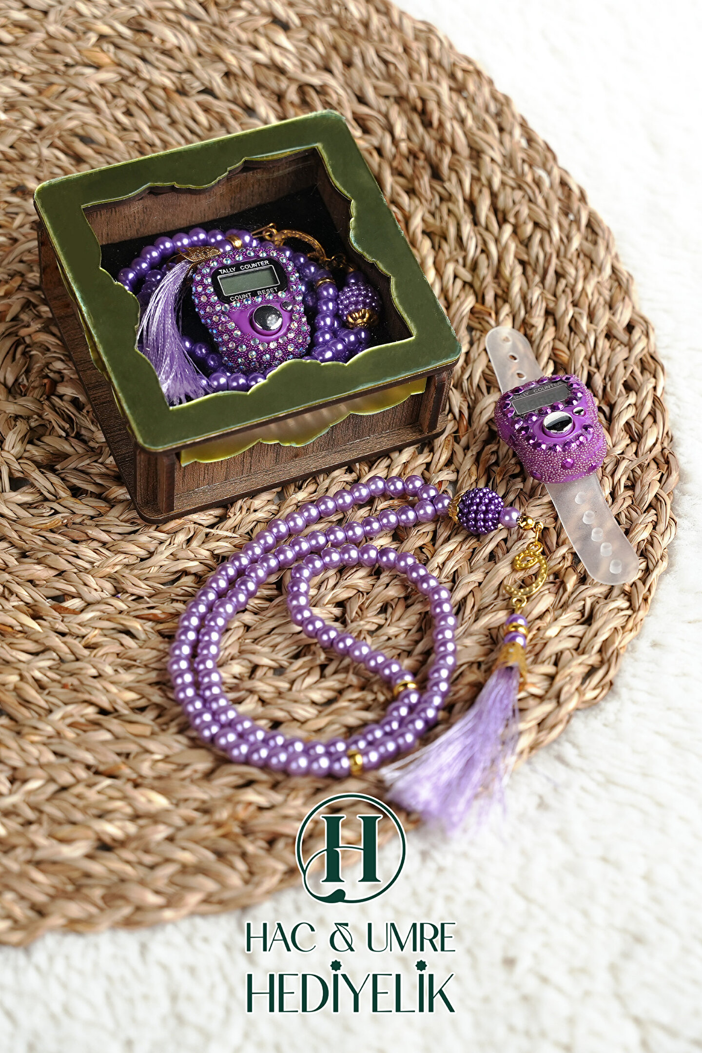 Hac Umre Hediyelik Hediyelik Tesbih Seti | Ahşap Kutulu Elektronik Tesbih ve 99lu İnci Tespih | Özel Gün Hediyesi
