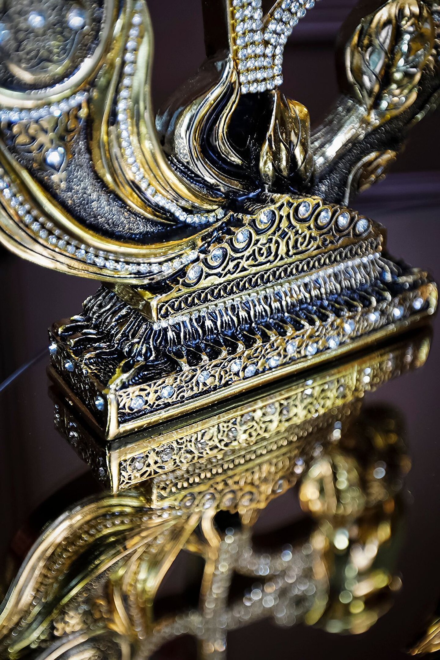 İki Lafız Çok Mana|Lale ve Gül Motifli Dekoratif Biblo ? Geleneksel Türk İslam Edebiyatı ve sanatlarının derin simgelerini taşıyan bu dekoratif biblo, lale ve gül motifleri aracılığıyla özel bir anlam yaratıyor. Lale, Allah'ı temsil ederken, gül ise peygamberimizi sembolize ediyor. İki parçadan oluşan bu zarif sanat eseri, geleneksel sembolizmimizi ve estetiği bir araya getiriyor. Lale ve Gül motiflerinin merkezinde yazılı Allah (c.c) ve Muhammed (s.a.s) lafızları, bu bibloyu sadece bir dekoratif obje olmaktan çıkarıp, aynı zamanda derin sevgi ve hasreti betimliyor. El işçiliğiyle özenle hazırlanan bu eser; evinizi, ofisinizi ya da sevdiklerinizin yaşam alanlarını güzellikle donatmanın ötesinde, mekan atmosferine derin bir anlam katıyor. Bu zarif eser sizin ve sevdiklerinizin yaşam alanlarına renk katmak için sizleri bekliyor... ? Hemen sipariş için ürün kodu: CN 106 ? Ürün Özellikleri: Orijinal Tasarım El Yapımı ve Yüksek Kaliteli Metalize Sert Polyester Malzeme Altın Kaplama 21x19,5 cm 860+765 gr El İşçiliği ? Kullanım Alanları: Yaşam alanlarına zarafet katmak için, Manevi bir hediye olarak, Dekoratif süs olarak, Anneye, Babaya, Eşe Hediye olarak, Yıldönümü, Doğum Günü, Terfi, Ev ve Ofis Hediyesi Olarak, Bereketin simgesi olması için, Maneviyatı hatırlatması için, Başarı ve sanatsal üretime ilham olması için, Kurumsal hediye ve diğer alanlarda kullanılabilir.