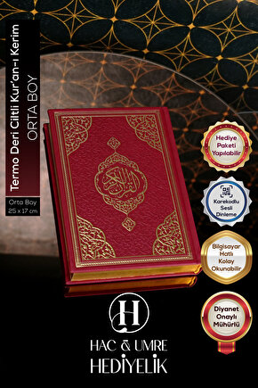 Hac Umre Hediyelik Kuranı Kerim | Lüks Termo Deri Kaplama Orta Boy Kırmızı Kuranı Kerim | Bilgisayar Hatlı Kuran