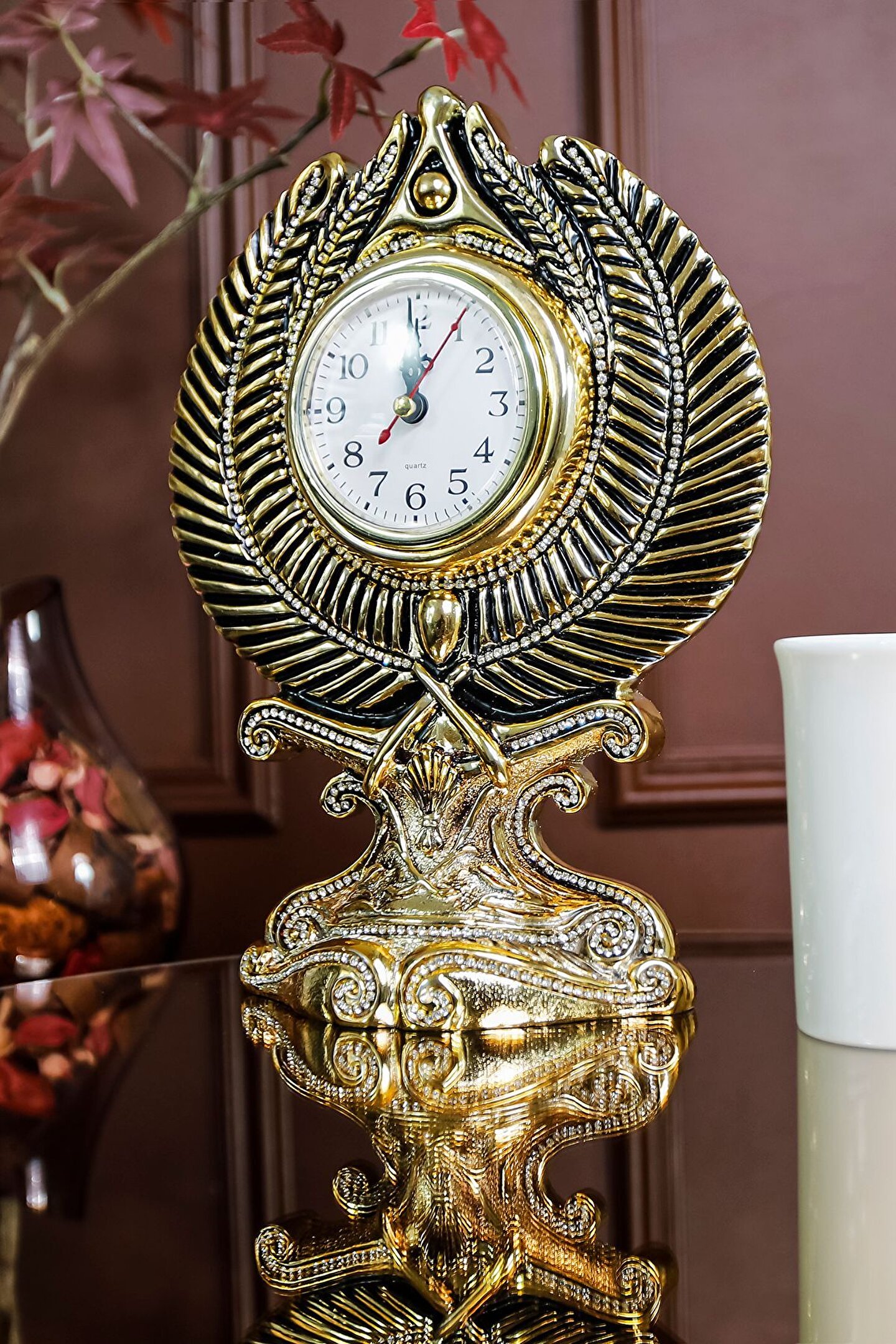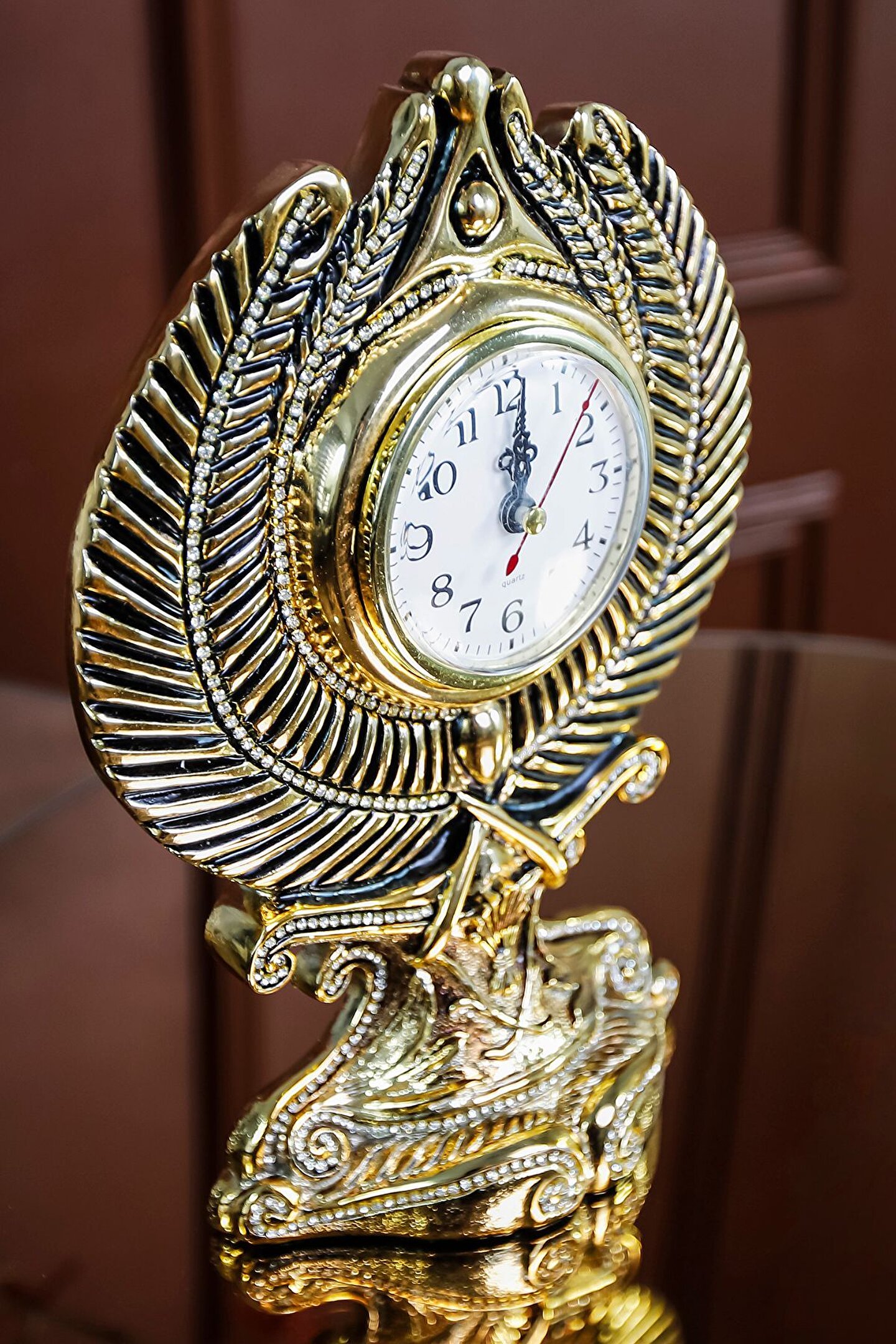 Zamanın Bereketi : Başak Motifli Masa Saati ? Başak, toprakla bütünleşmiş bir simge olarak, bereketin, verimliliğin ve bolluğun temsilcisidir.; Başaklar hasat zamanını simgelerken, aynı zamanda emeğin ve çalışmanın güzelliklerini hatırlatır.; Başak motifleri, yaşam alanınıza sadece görsel bir estetik katmakla kalmaz, aynı zamanda evinizi ve işyerinizi bereket enerjisiyle doldurur.; Bu zarif masa saati, başak motifleriyle bezenmiş estetik bir şölen sunarken, aynı zamanda bereketin ve bolluğun sembolü olan başağın derin anlamlarını taşıyor.; Aynı zamanda her anın kıymetini bilmeyi, çabaların meyvesini toplamayı ve bereketle dolu bir yaşamı temsil ediyor.; Her bakışta size bereket ve huzur hissi katacak bu özel saat, zamanı izlerken aynı zamanda yaşamınıza anlam katmayı hedefliyor.; Tüm bu sebeplerle; saatimiz evine veya ofisine zarafet katmak isteyen ve vakti değerli olan takipçilerimize göre.; ?
