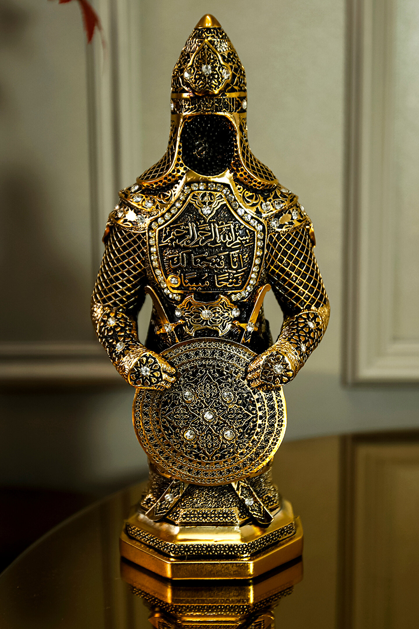 büyük boy Tek parça halinde gelen bu ofis hediyesi, minimalist ve modern dekorasyon anlayışınıza uyum sağlar; Avangard tasarımıyla dikkat çeken Osmanlı zırh figürü, ofisinize şık bir dokunuş katar; Dayanıklı polyester materyali sayesinde uzun ömürlü kullanım sunar ve kolay temizlenebilir özelliğiyle pratik bir kullanım sağlar;ürün ölçüsü:30x11cm dir.