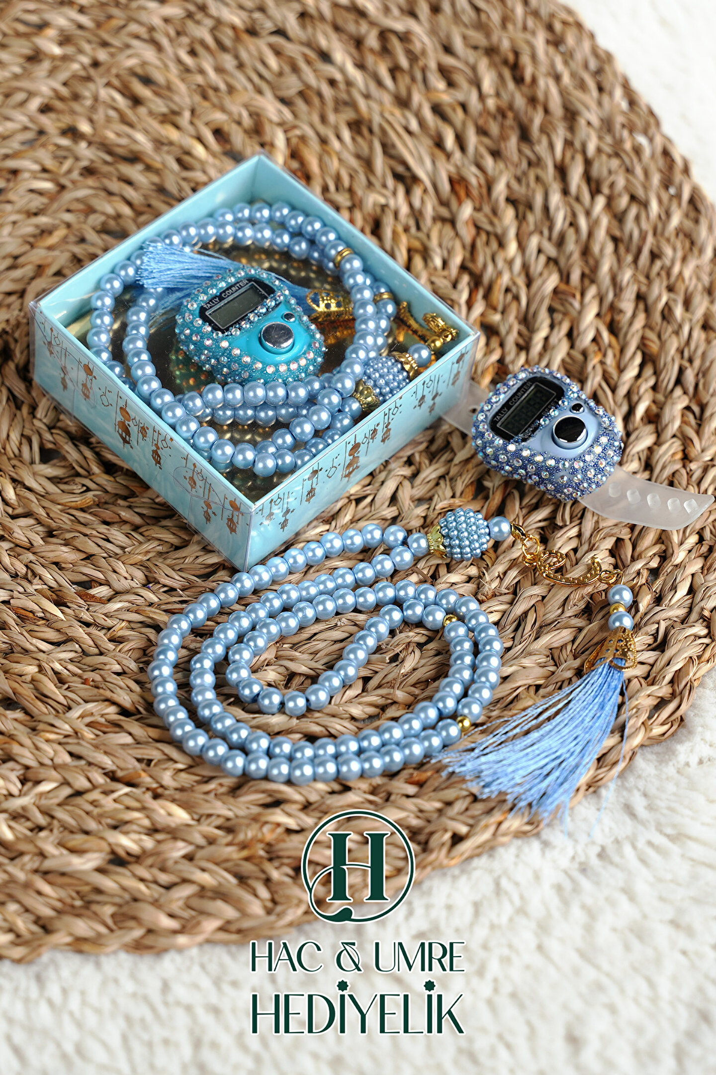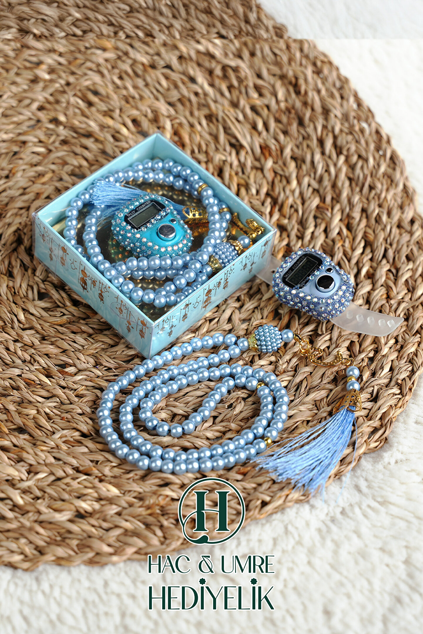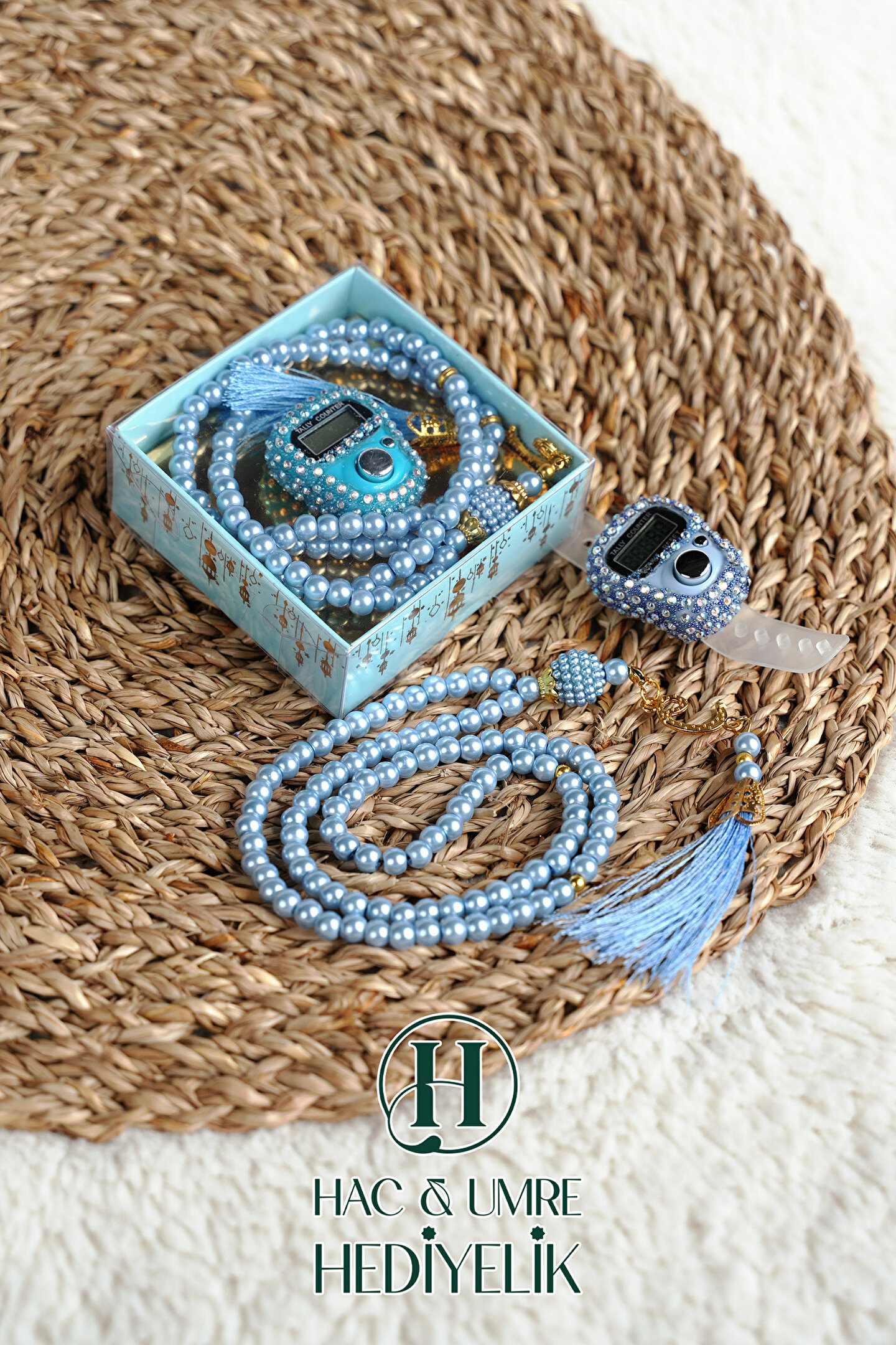 Hac Umre Hediyelik Taşlı Zikirmatik ve İnci Tesbih Seti | Mevlüd Hac Umre Davet Organizasyon Hediyesi | 10 Adet Set
