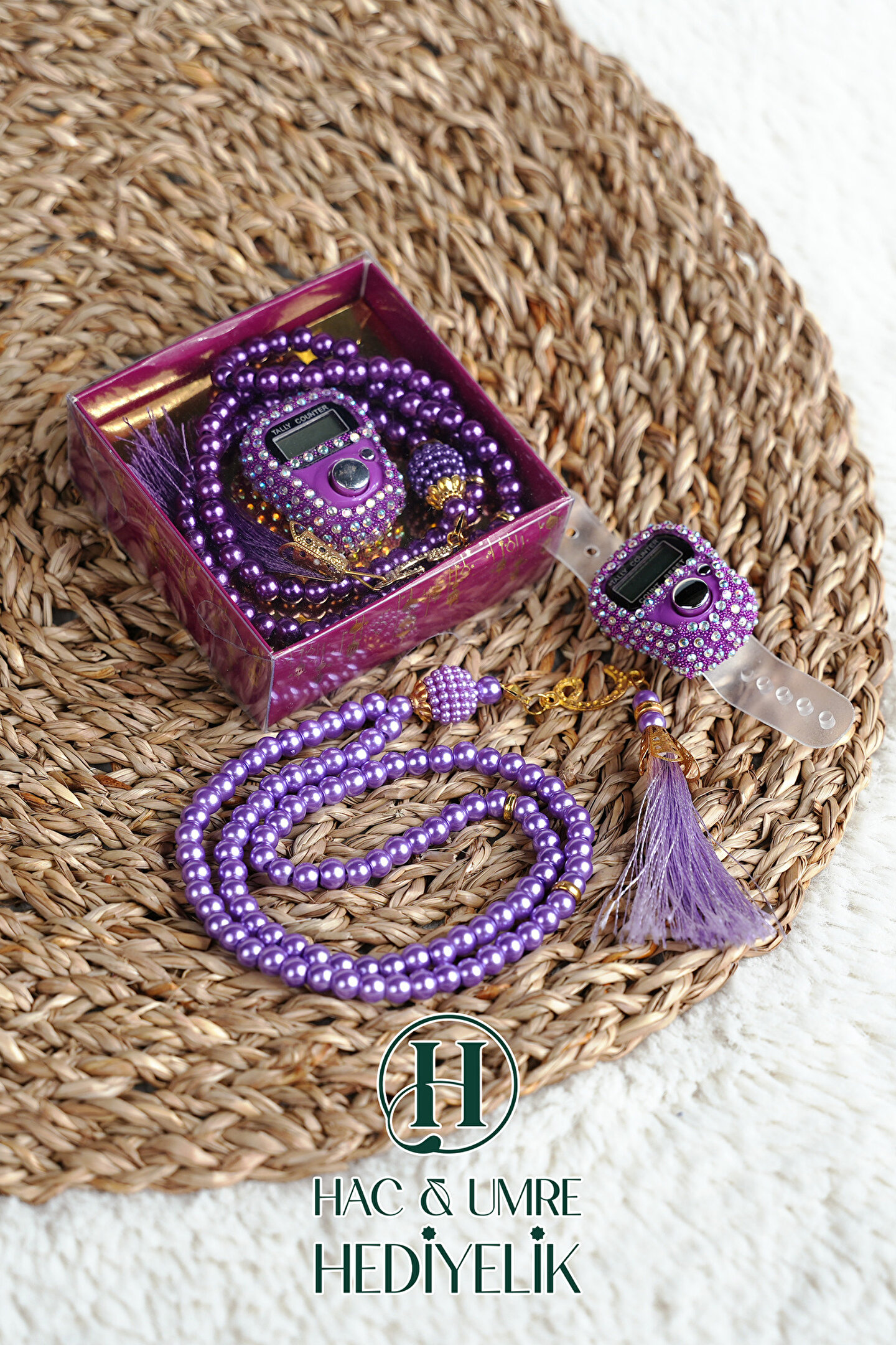 Hac Umre Hediyelik Taşlı Zikirmatik ve İnci Tesbih Seti | Mevlüd Hac Umre Davet Organizasyon Hediyesi | 10 Adet Set