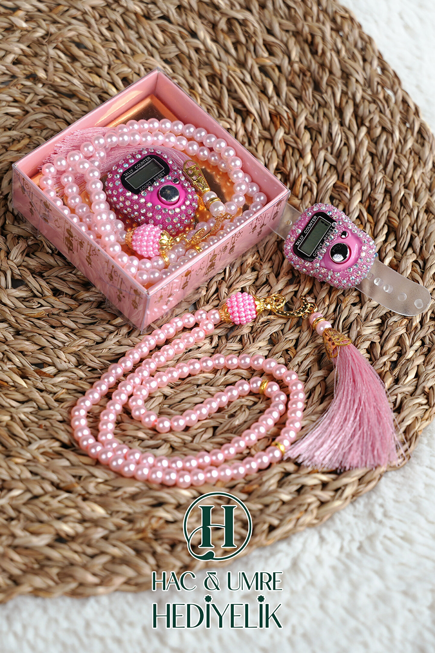 Hac Umre Hediyelik Taşlı Zikirmatik ve İnci Tesbih Seti | Mevlüd Hac Umre Davet Organizasyon Hediyesi | 10 Adet Set