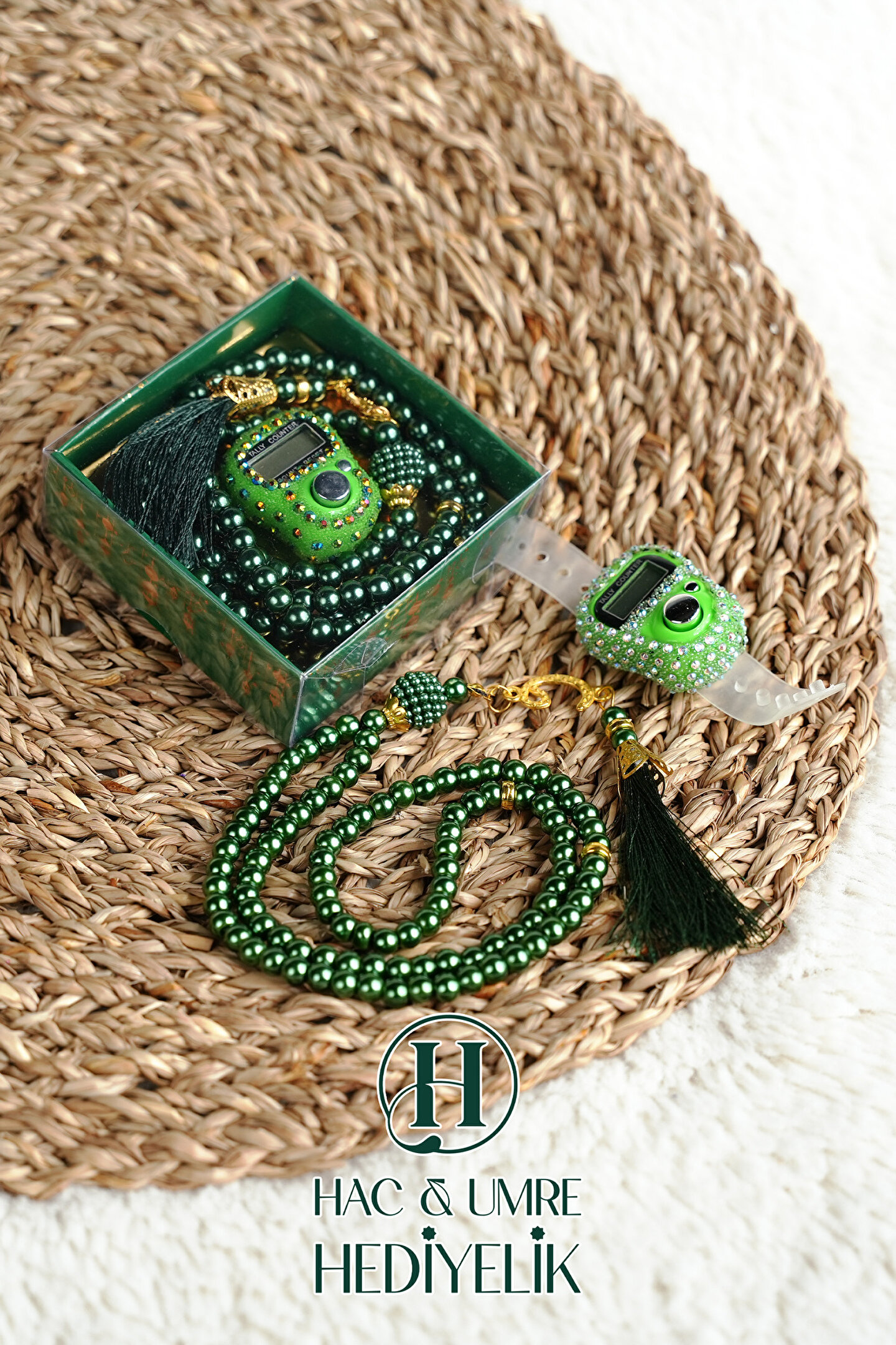 Hac Umre Hediyelik Taşlı Zikirmatik ve İnci Tesbih Seti | Mevlüd Hac Umre Davet Organizasyon Hediyesi | 10 Adet Set