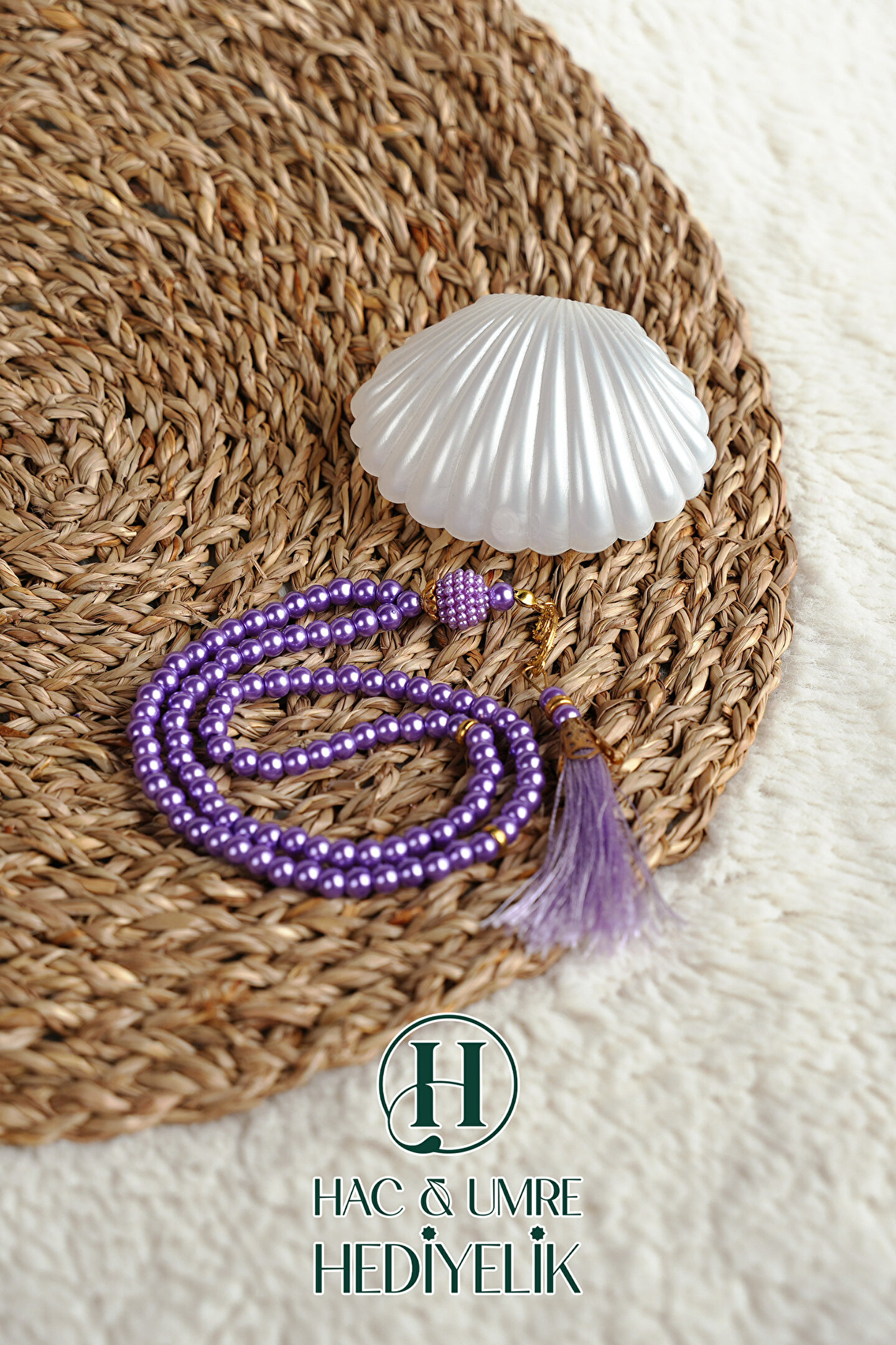 Hac Umre Hediyelik Tesbih Hediyelik | Özel Gün Davet Hediyesi | Deniz Kabuğu Kutulu 99lu İnci Tesbih Vav Süslü Püsküllü