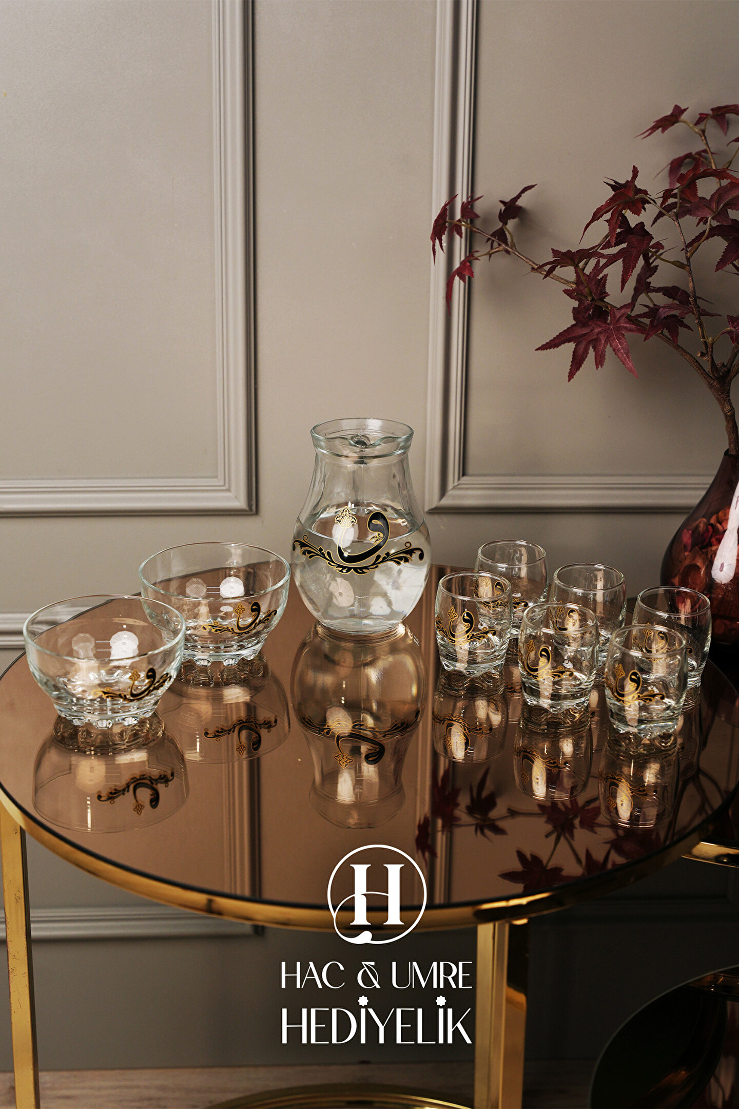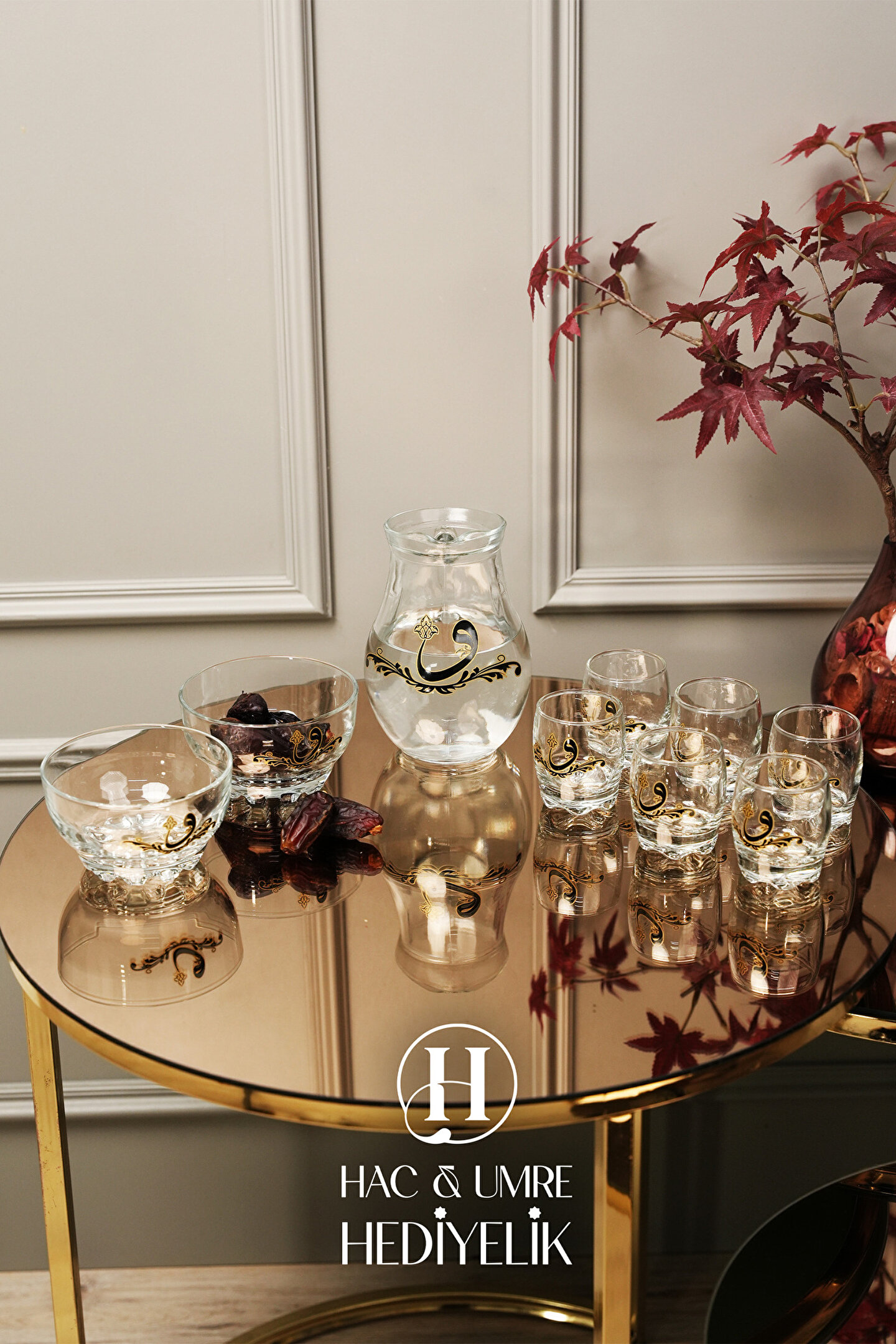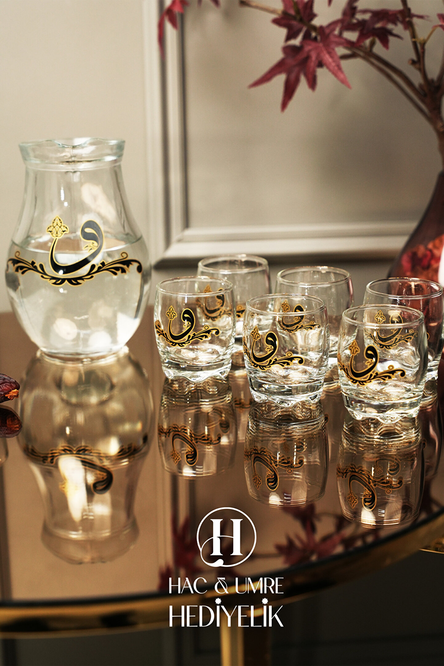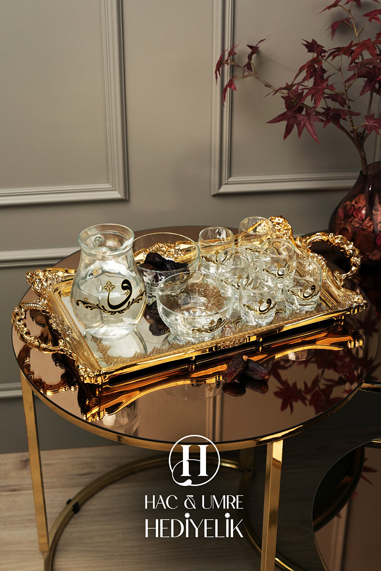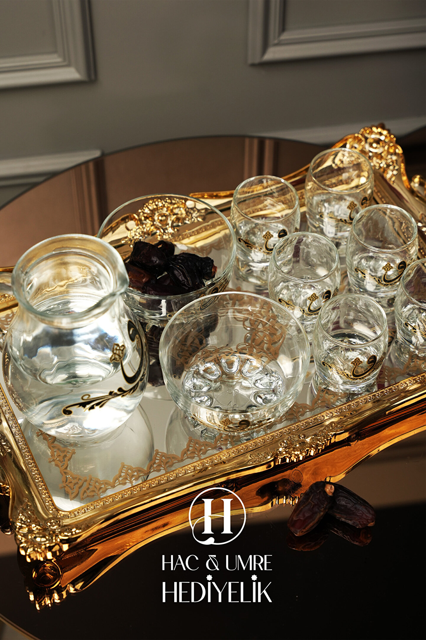 ✨ Lüks 10 Parça Zemzem Takımı | Gold Aynalı Tepsi, İkramlık, Bardaklar ve Sürahi Dahil Full Set