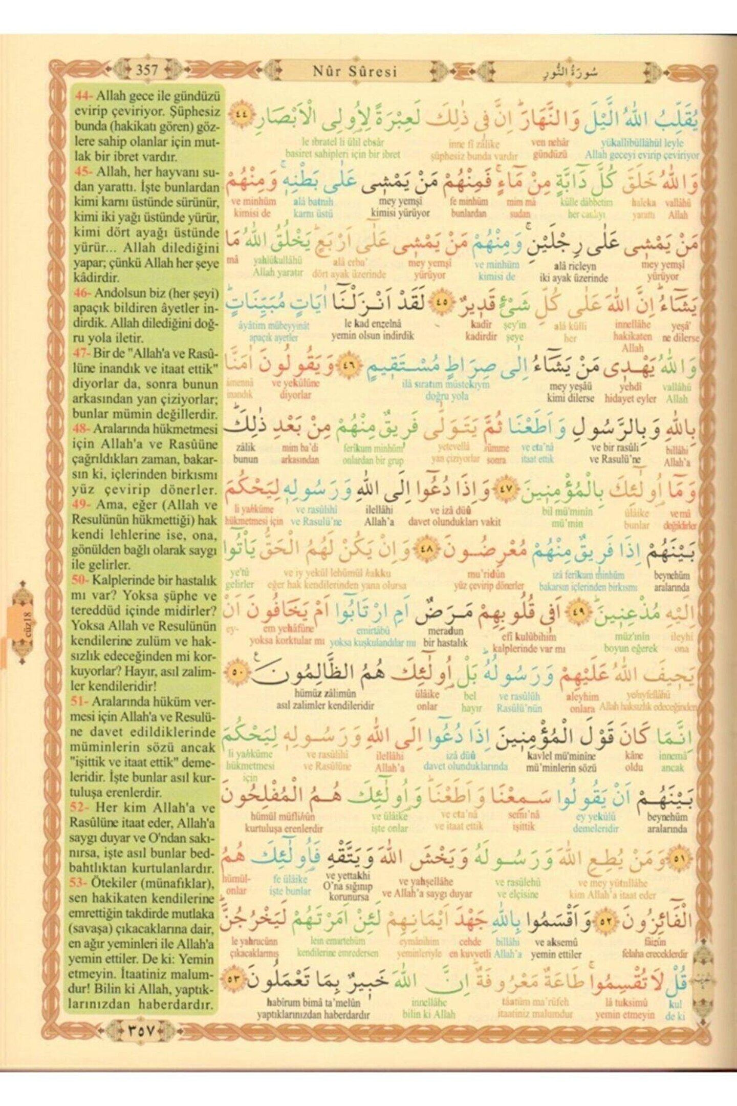 Arapça hat ile yazılmış Kur'an; ı Kerim, okuma kolaylığı sağlayan satır arası kelime meali ve Türkçe transkripti ile birlikte sunulur; Elmalılı Muhammed Hamdi Yazır'ın kaleminden çıkan bu eser, Kur'an; ı Kerim'in aslına sadık bir şekilde tecvidli olarak hazırlanmıştır; Normal boyutu sayesinde rahat taşıma ve okuma imkanı sunar; evde, işte veya seyahatte her an yanınızda taşıyabilirsiniz; Tekil ürün olarak sunulan bu eser, özel koleksiyonunuzda veya hediye olarak tercih edebileceğiniz ideal bir seçenektir;