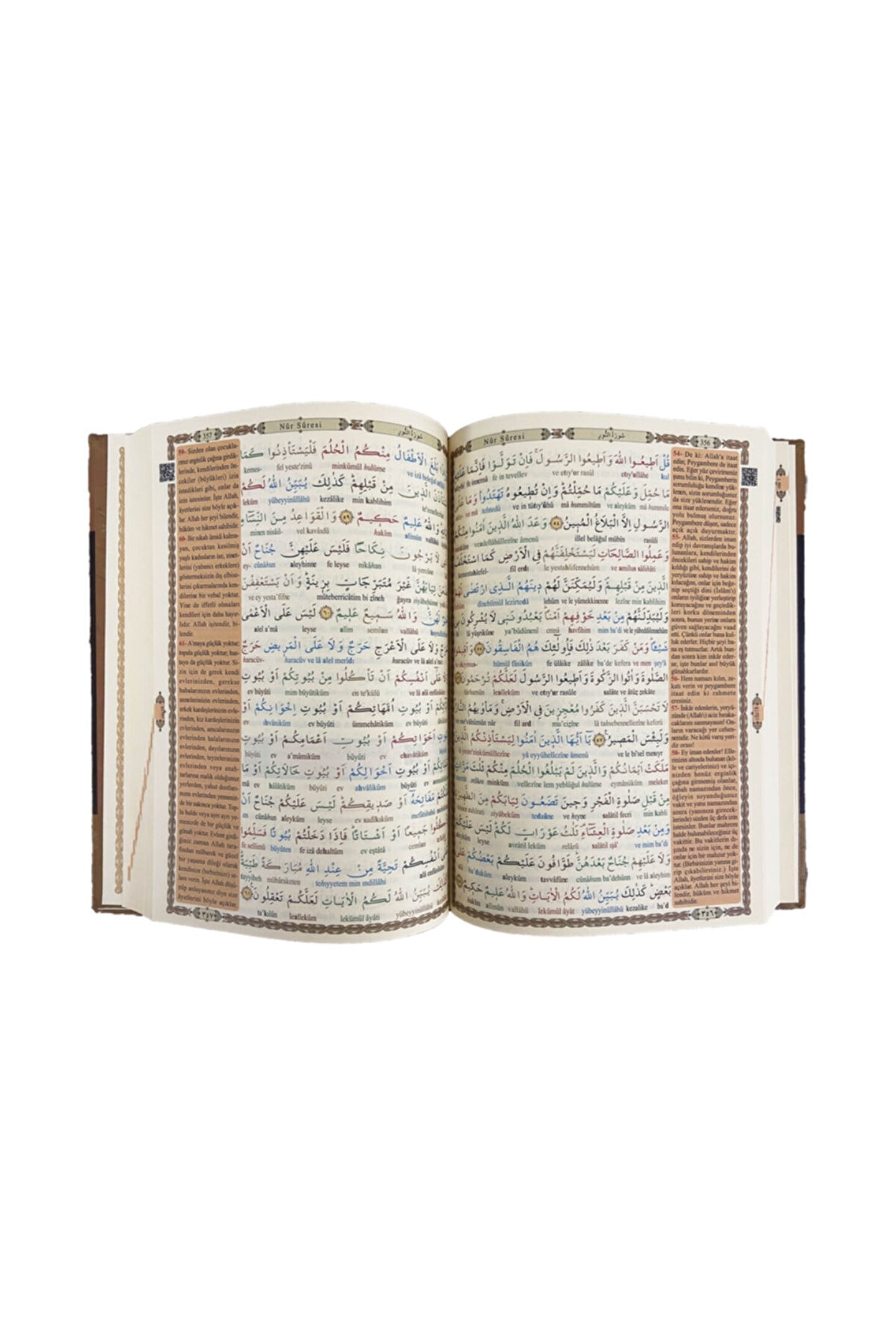 rahle boy kuranı kerim türkçe okunuşlu tecvidli ve mealli ebat: 19 x 28 cm Diyanet işleri başkanlığı mushafları inceleme ve kıraat kurulu'ndan onaylı ve mühürlüdür ; Satır altında renkli türkçe okunuşludur. Bu özelliği okumayı bilmeyen veya yeni öğrenenler için çok faydalıdır. ; Milyonlarca insanın kuranı kerim okumasını öğrendiği hatla yazılmıştır, okuması çok kolay ve bilgisayar hatlıdır ; Kelime kelime renklendirilmeli satır altı türkçe tecvidli okunuşlu kuranı kerim. Tecvitli okunuşu sayesinde kolayca tecvitli okumayı öğrenebilirsiniz ; Baskı kalitesi ve kağıt rengi sayesinde ışık altında veya gün ışığında okurken gözlerinizi yormaz ; Iç kısmı renkli ve 622 sayfa, sert ve dayanıklı kapak ; (qr) karekodludur ve bütün akıllı telefonlarda, cihazlarda karekodu okutarak istediğiniz sayfayı ve ayeti dinleyebilirsiniz ; Şamua kağıt, kaliteli basım kuranı kerim ;