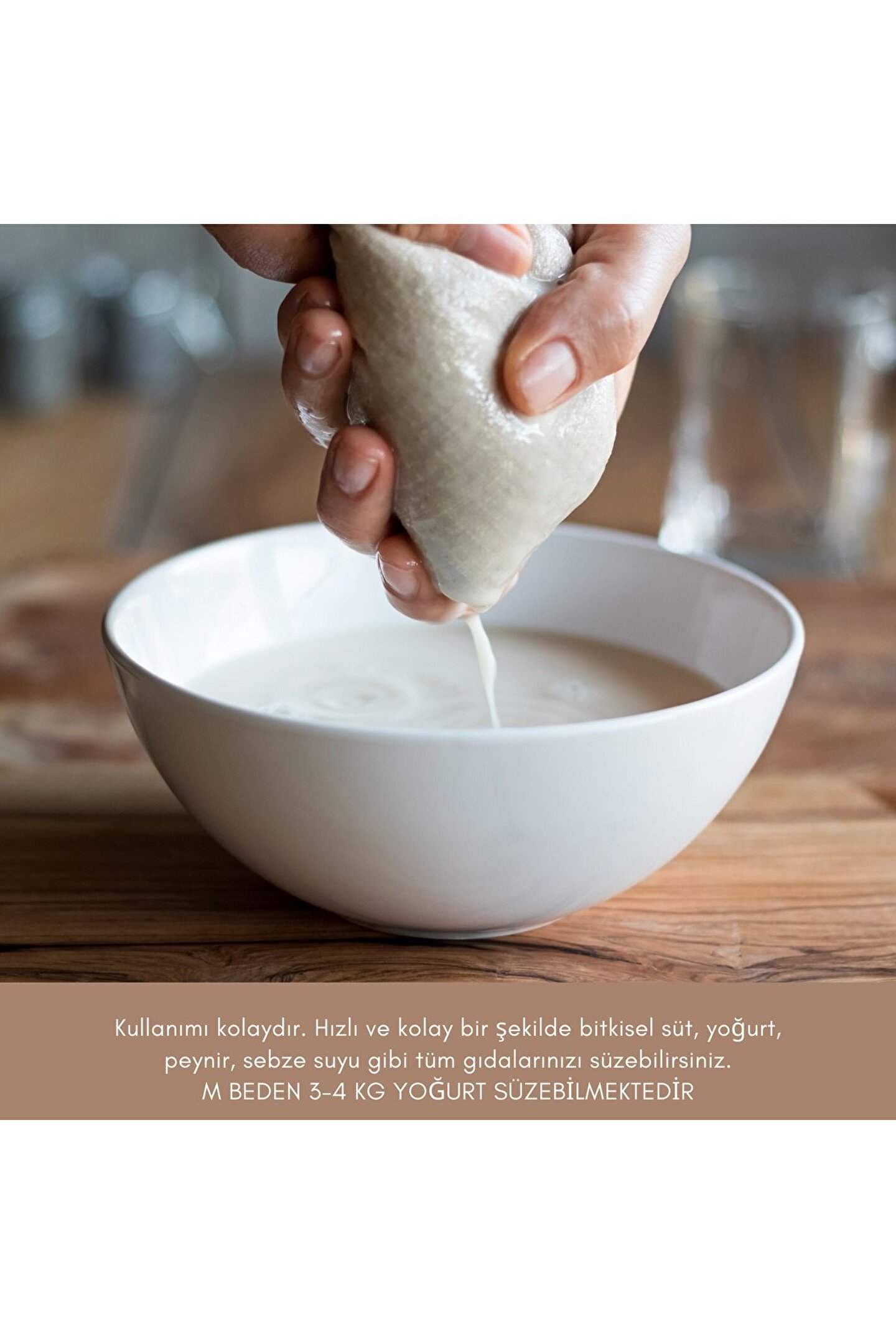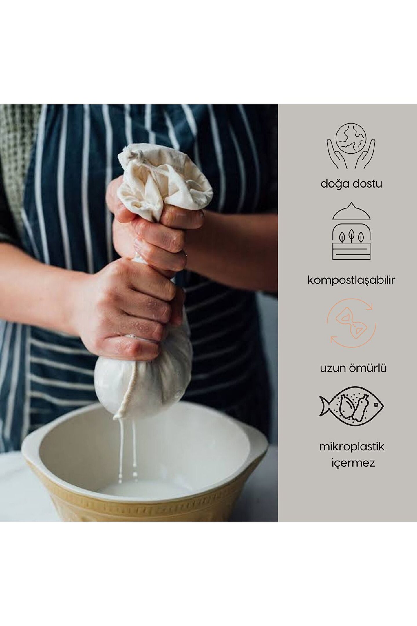 Çok amaçlı süzme kesesi tüm gıda ürünlerinizi süzmek için tasarlanmıştır.; ; Tekrar kullanılabilirdir.; ; Organik sık dokuma pamuk kumaştan üretilmiştir.; ; Meyve, yoğurt, bitkisel ve hayvansal süt, kabak ve smoothie süzmek cold brew - soğuk kahve demleme içinde uygundur.; ; Ölçüleri yaklaşık 25*30 cmdir.; ; Kolay temizlenebilmesi için iç kısmında dikiş yoktur.; ; Makinede yıkanabilir.; Direk gıda ile temas ettiğinden doğal temizleyiciler kullanmanız tavsiye edilir.; Kullanmadan önce veya ihtiyaç duyduğunuzda kaynar suda 3-5 dk kaynatarak steril edebilirsiniz.; ;3-4 kg yoğurt süzmek için idealdir
